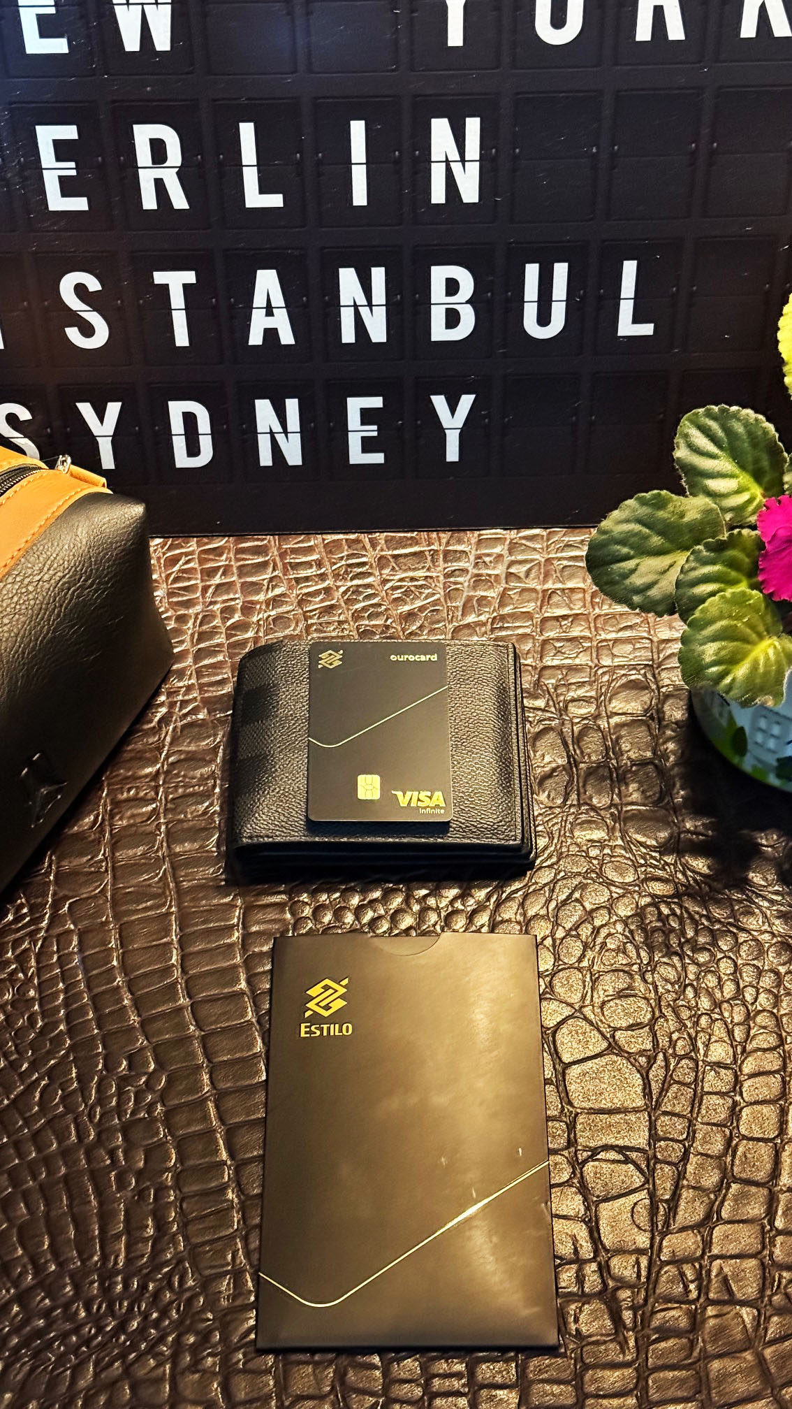 O kit de boas-vindas é bem simples, mas o cartão ficou bem bonito com o novo layout misturando preto e dourado.
