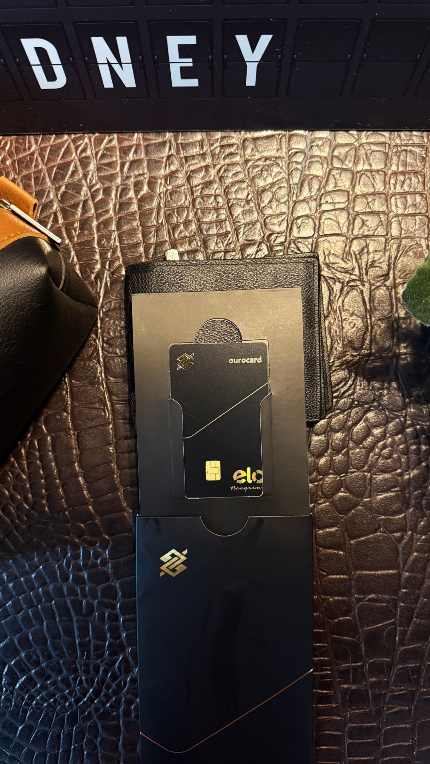 O kit de boas-vindas é bem simples, mas o cartão ficou bem bonito com o novo layout misturando preto e dourado.