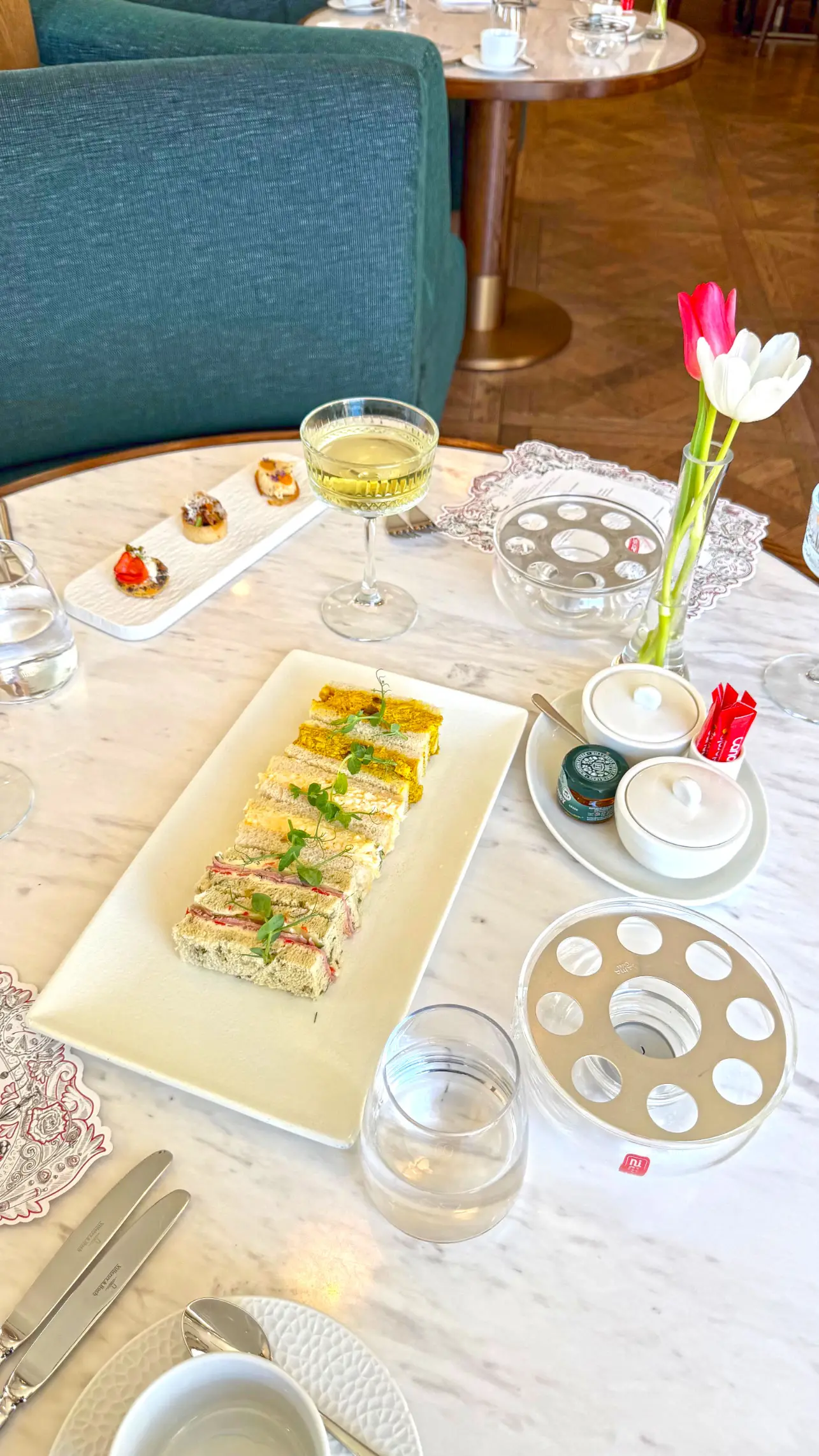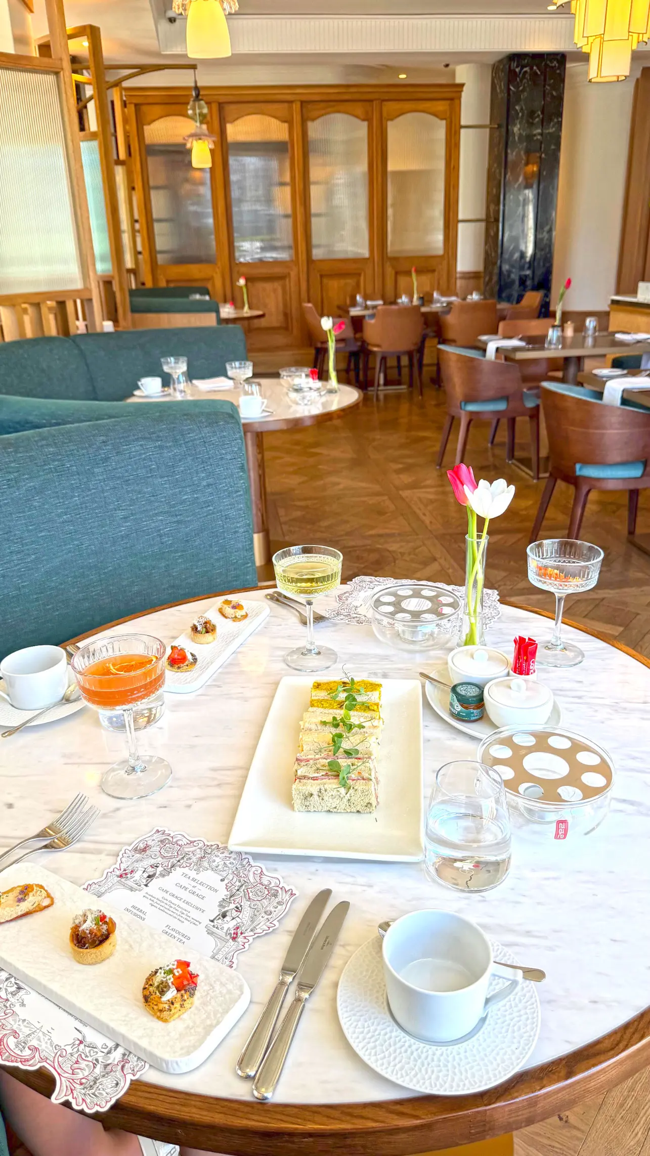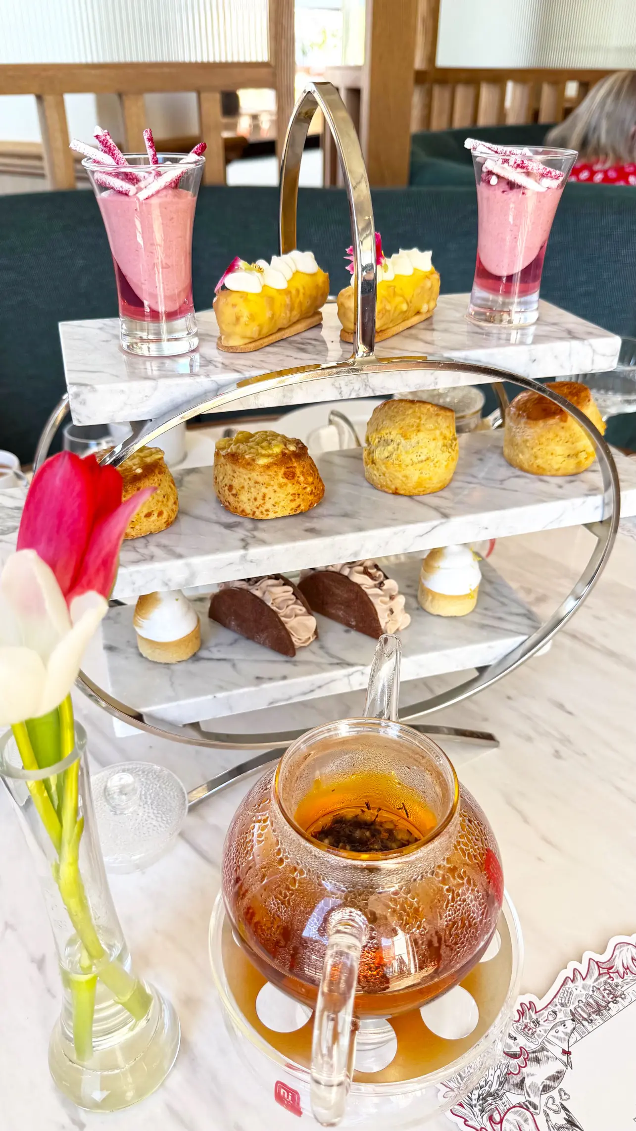 Os scones vieram quentinhos, os sanduíches tinham frescor impecável e as sobremesas apresentavam aquele equilíbrio perfeito entre delicadeza estética e sabor marcante. Optamos pela versão com Cap Classique, que harmonizou perfeitamente com os doces e trouxe um toque ainda mais festivo à tarde.