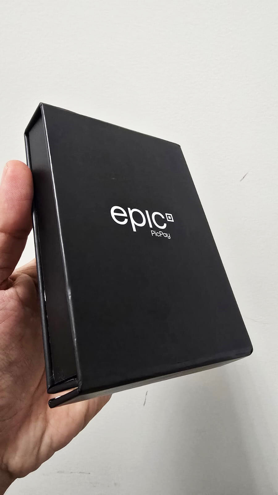 O kit de boas-vindas do Epic PicPay cumpre bem o papel, mas sem grandes surpresas. A embalagem é bonita, com um visual minimalista e acabamento simples, que passa uma boa impressão logo de início.
