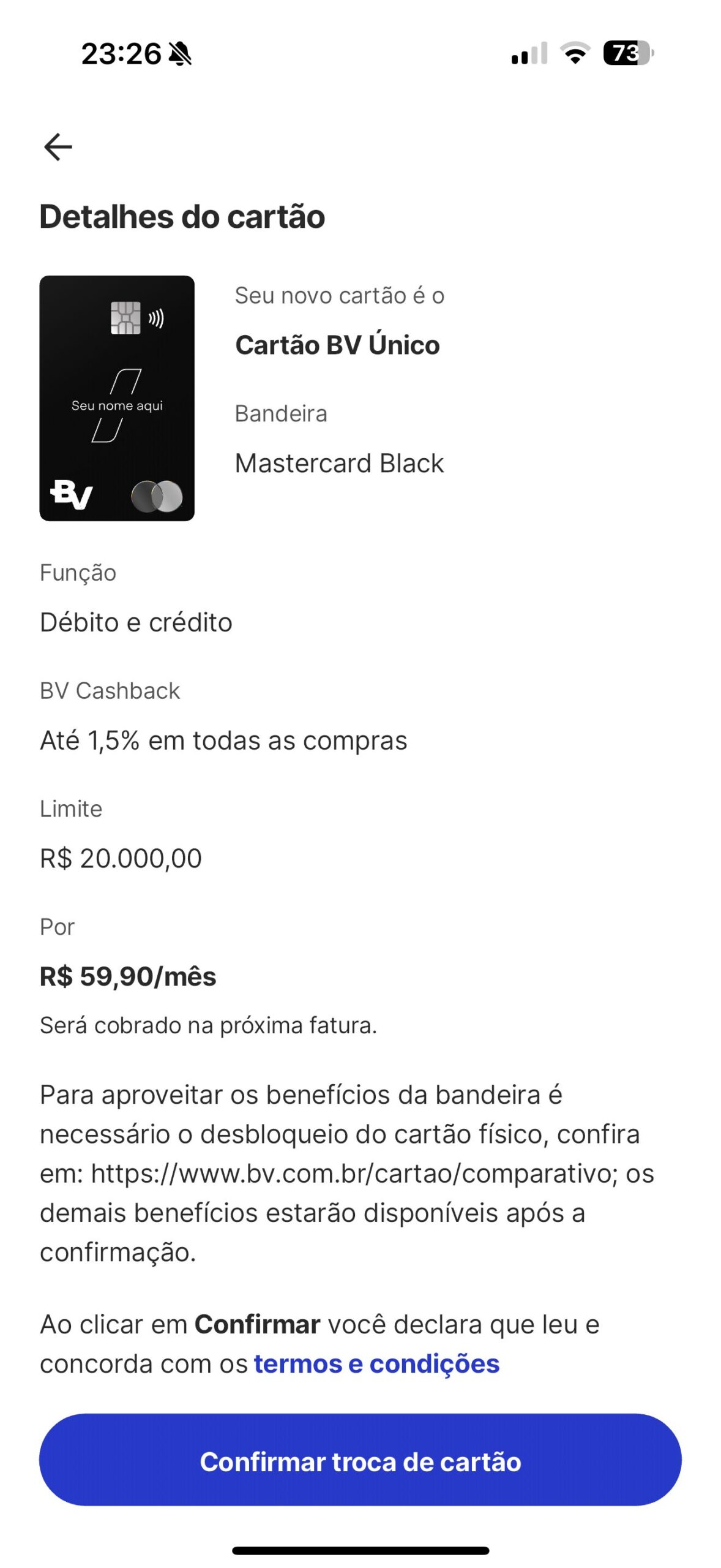 Se você tem um cartão simples, e deseja um upgrade, pode tentar realizar a operação pelo app. Eu saí do cartão mais simples para o Banco BV Único Mastercard Black.