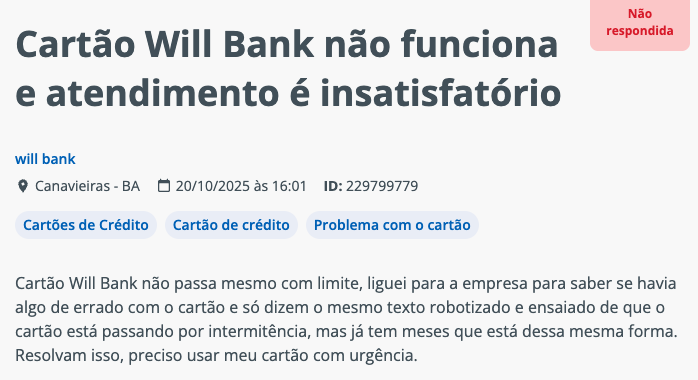 A comunidade CMV é rica no compartilhamento de experiências pessoais. Os membros são engajados e sempre se ajudam. Desta vez, um de nossos assinantes compartilhou uma situação vivenciada com o cartão will bank.