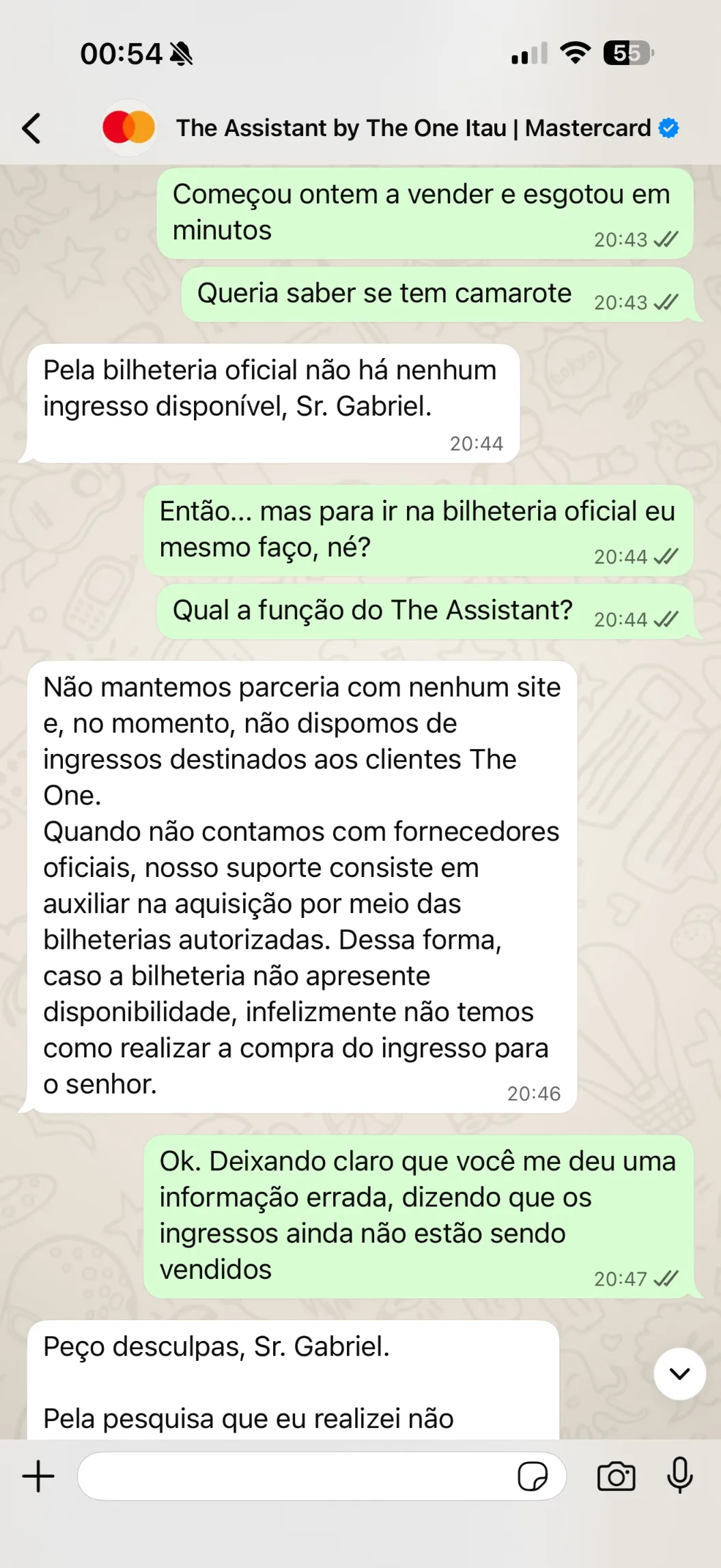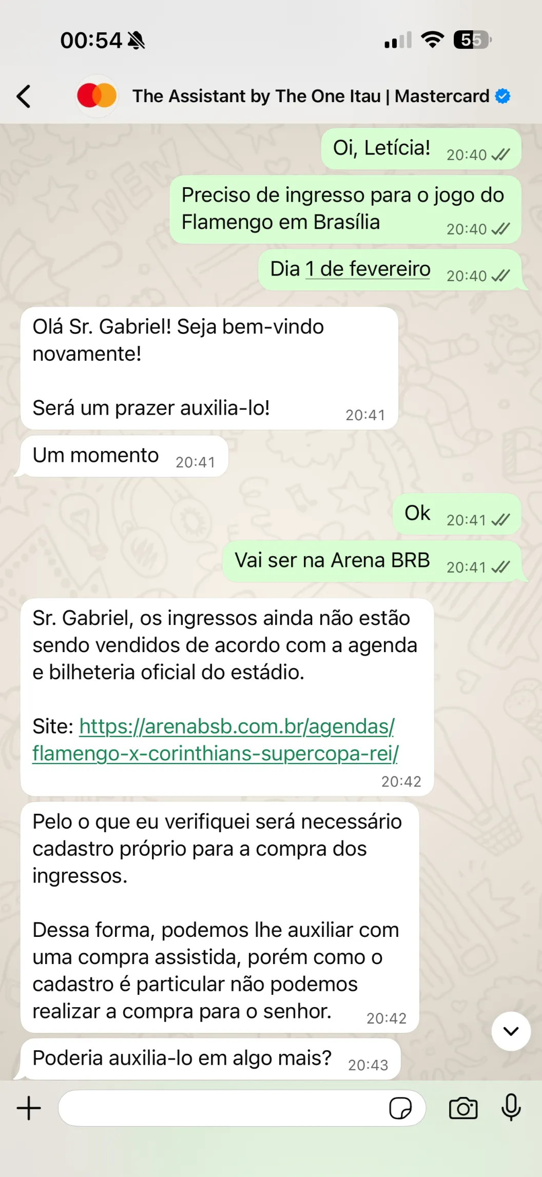 Esse é o texto bonitinho que o Itaú divulga sobre o benefício. Na prática, é totalmente diferente. Todas as vezes que eu acionei o The Assistant no WhatsApp foi um fracasso: