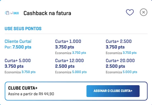 Cashback na fatura