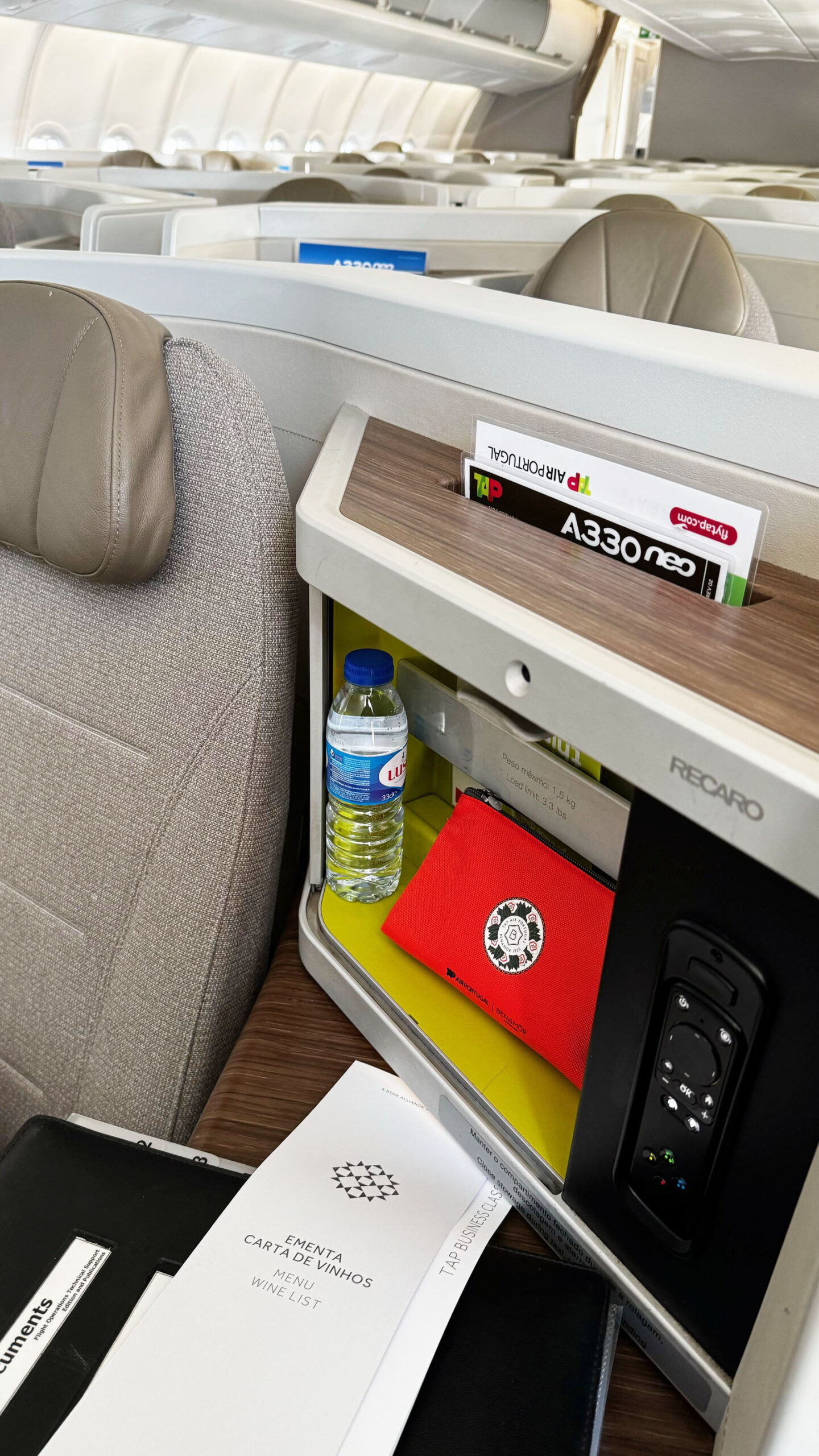 Destaque para o design diferenciado dos assentos, reclinação ampliada e apoios de cabeça ajustáveis. É uma opção intermediária que vale o investimento para quem deseja mais comodidade sem pagar pela executiva.