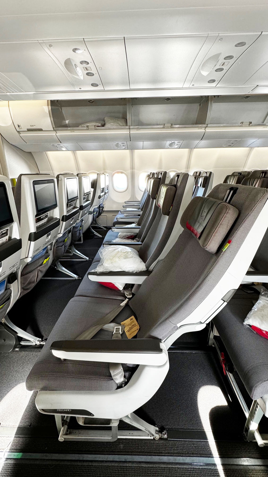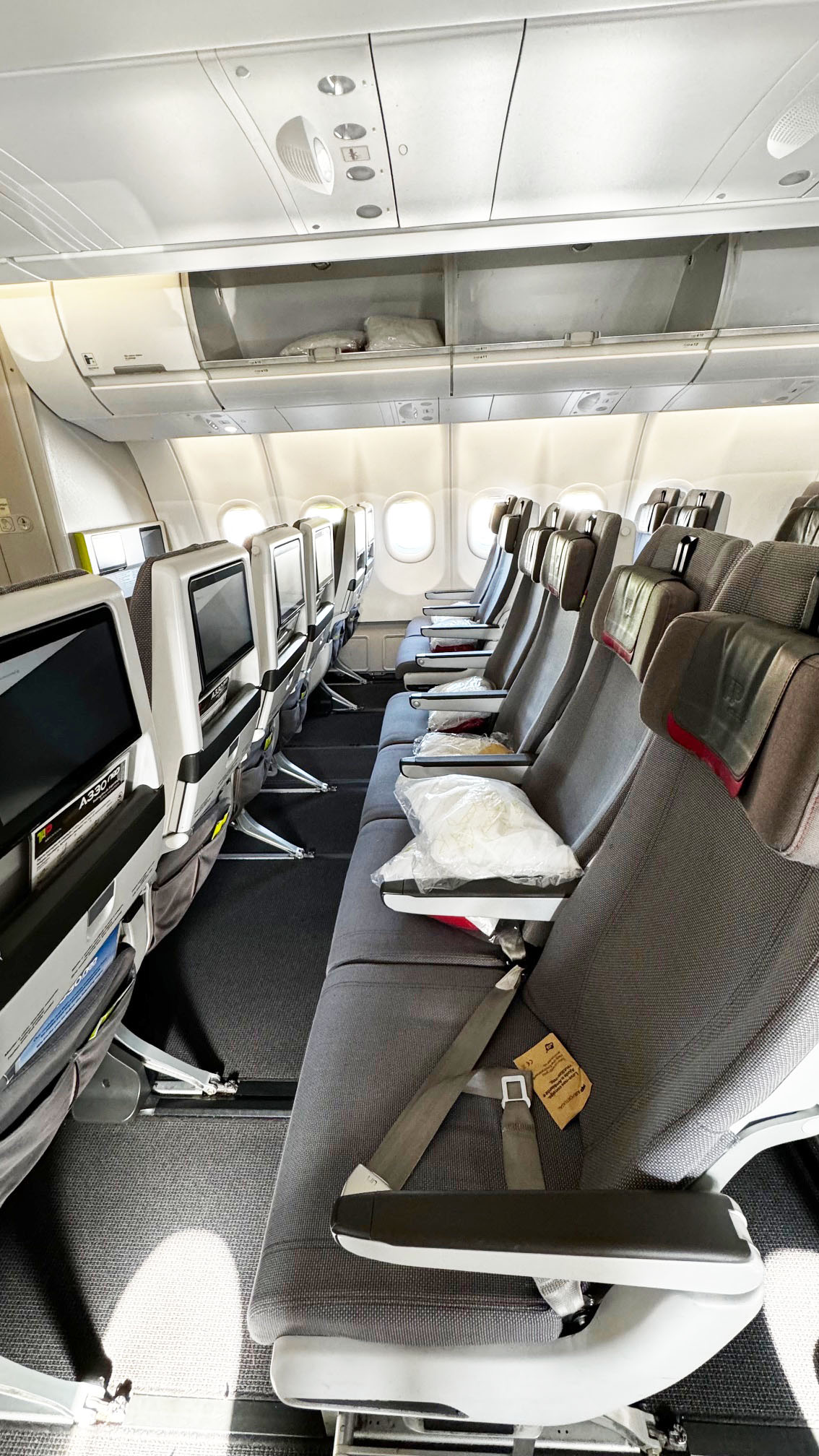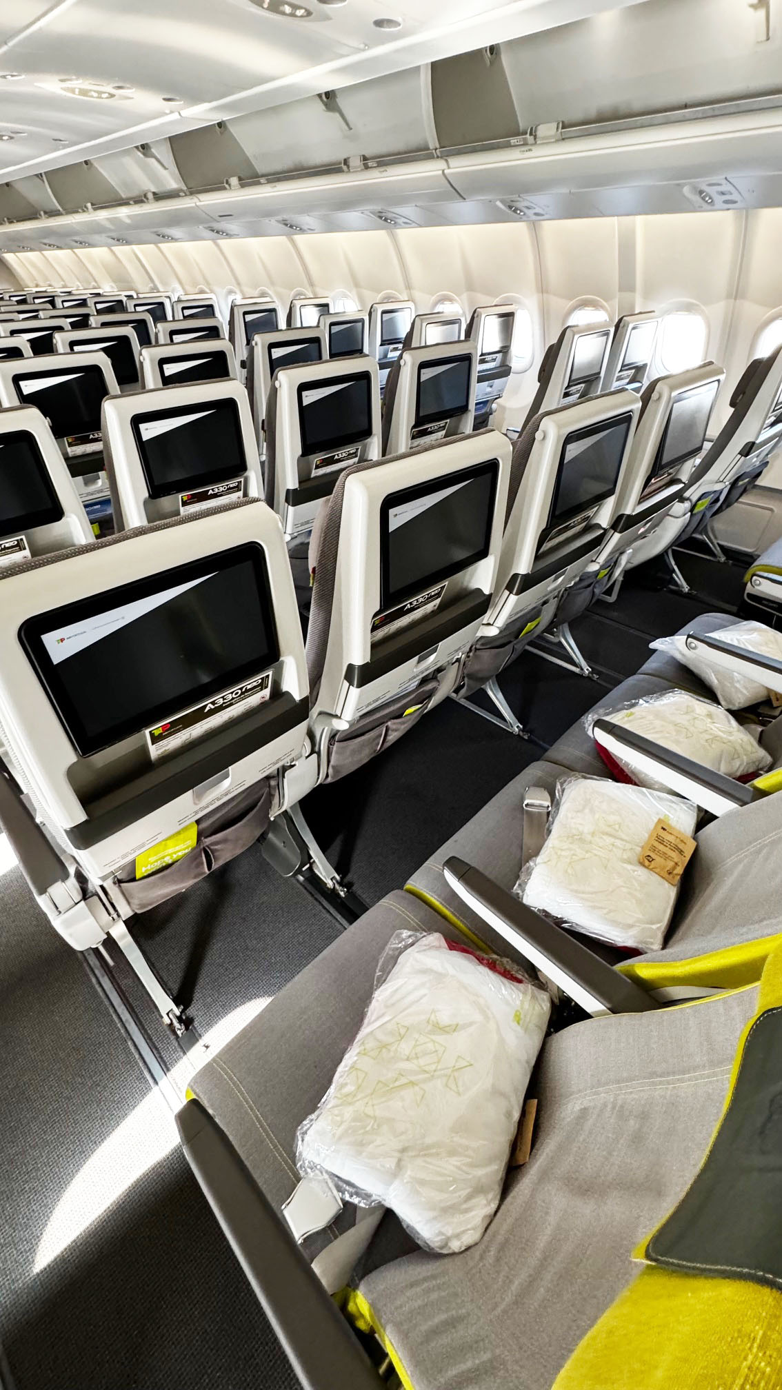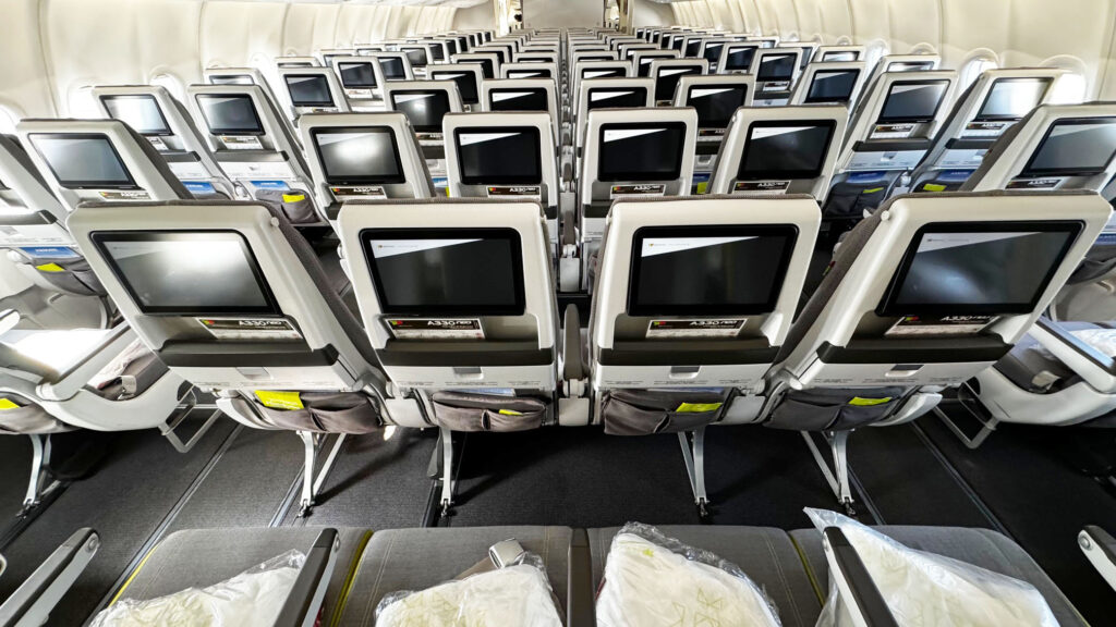 O A330-900neo da TAP transporta 298 passageiros, divididos da seguinte forma: