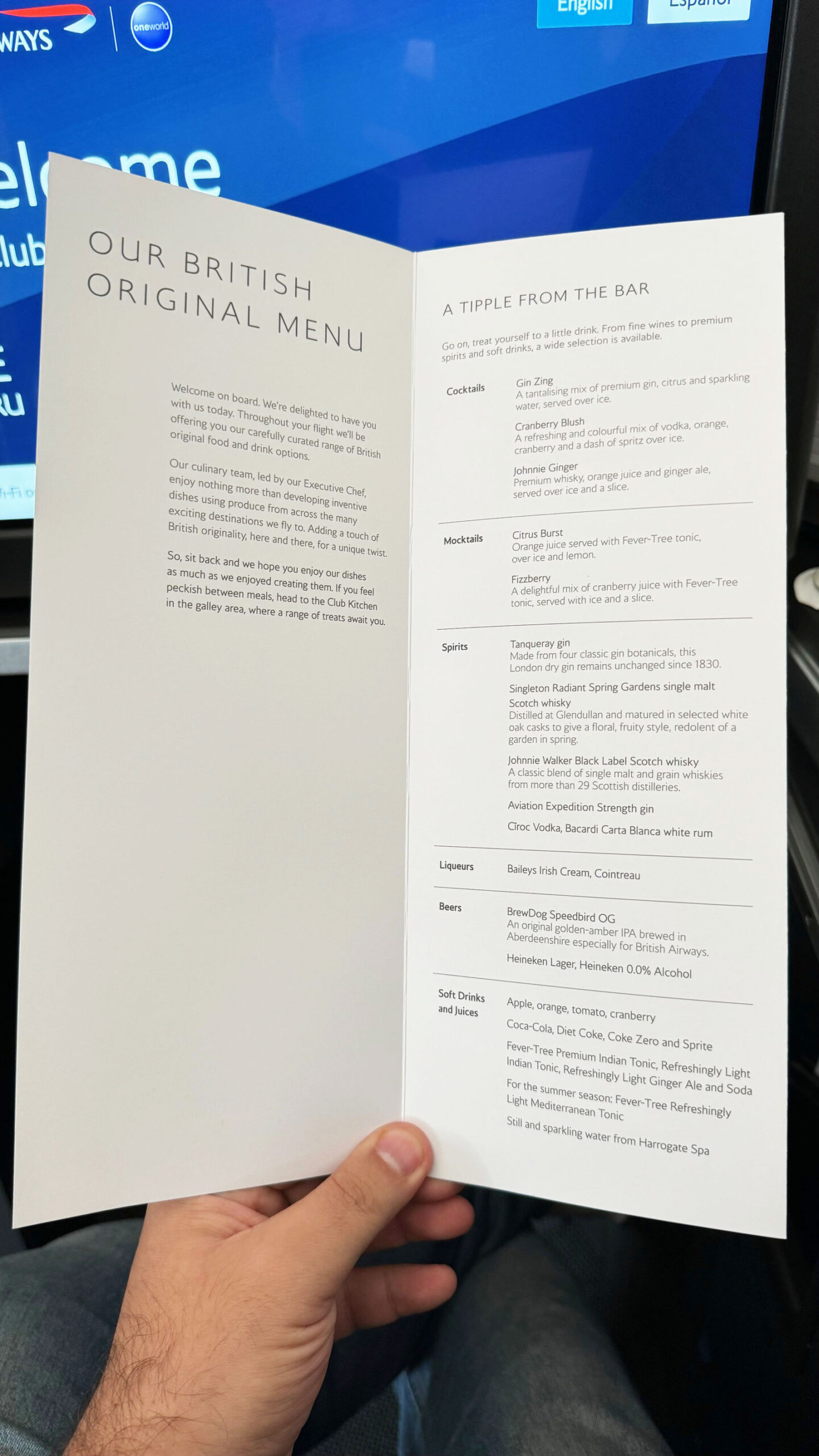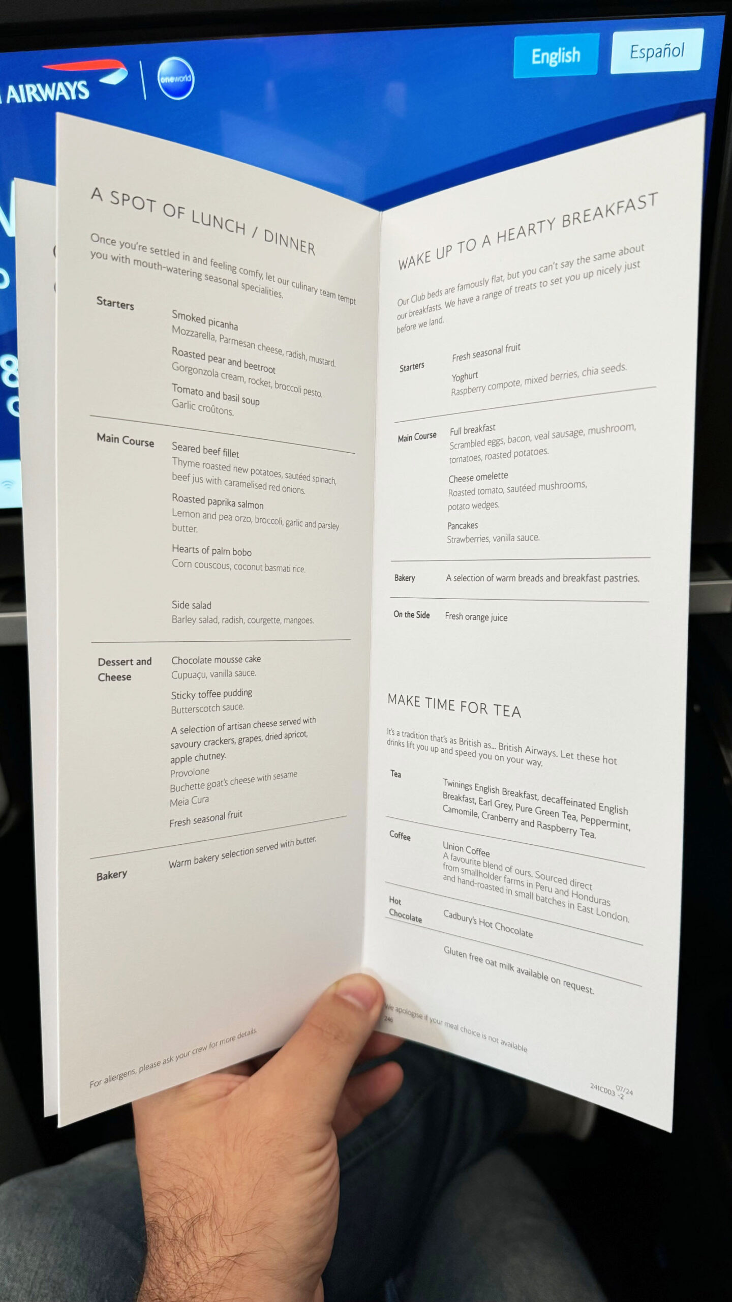 Gostei muito da experiência com a British Airways. Para mim, a companhia está entre as melhores da Europa, unindo conforto e consistência. Os novos assentos com portinha dão uma sensação extra de privacidade e transformam o voo em algo muito mais agradável. O serviço de bordo foi bem executado, com refeições saborosas e bem apresentadas, e o atendimento se manteve atencioso do início ao fim.