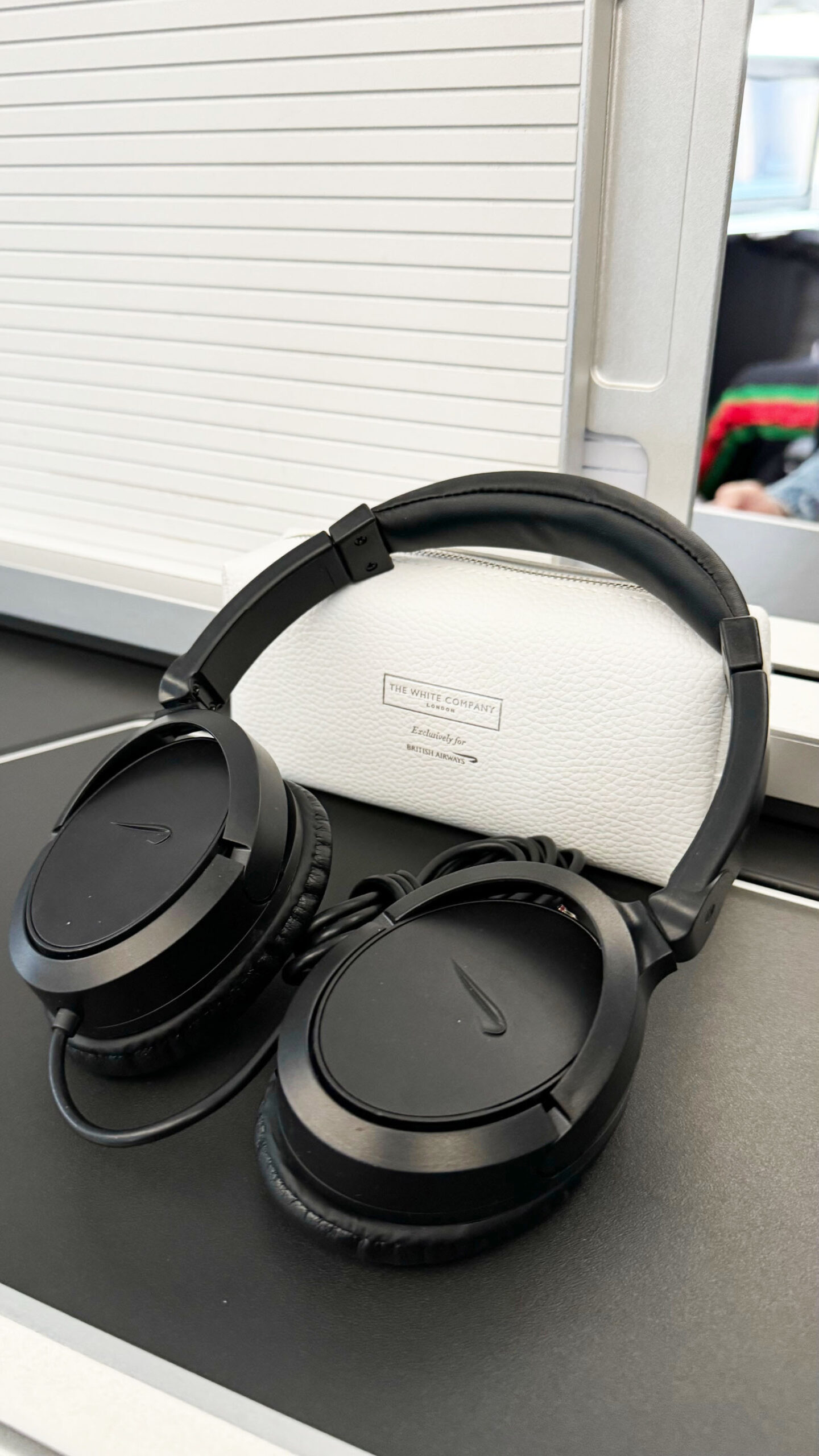 O amenity kit da British Airways inclui uma nécessaire elegante em material texturizado, itens de higiene da linha The White Company – como creme hidratante, bálsamo labial e loção para as mãos – além de acessórios práticos para o descanso, como máscara de olhos, meias e protetores auriculares.