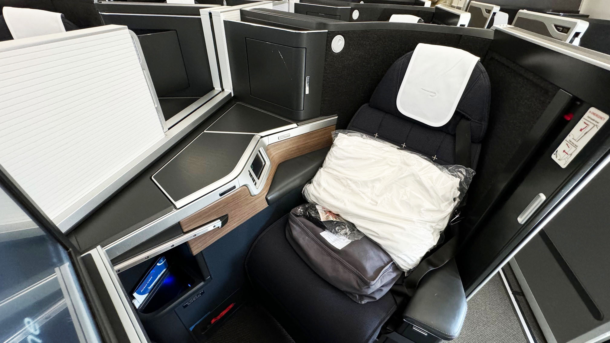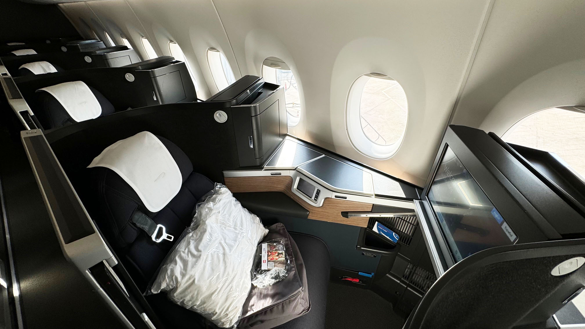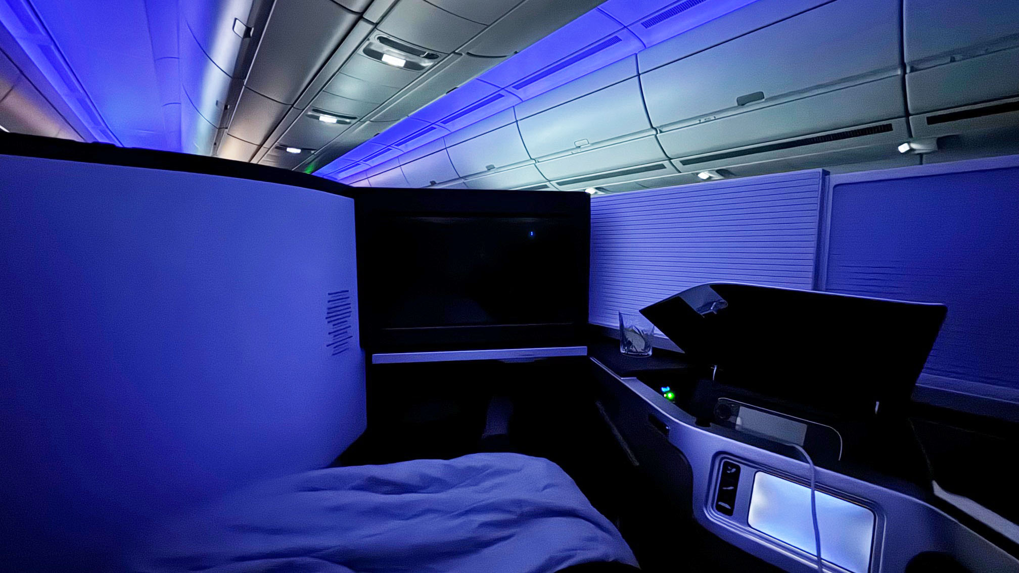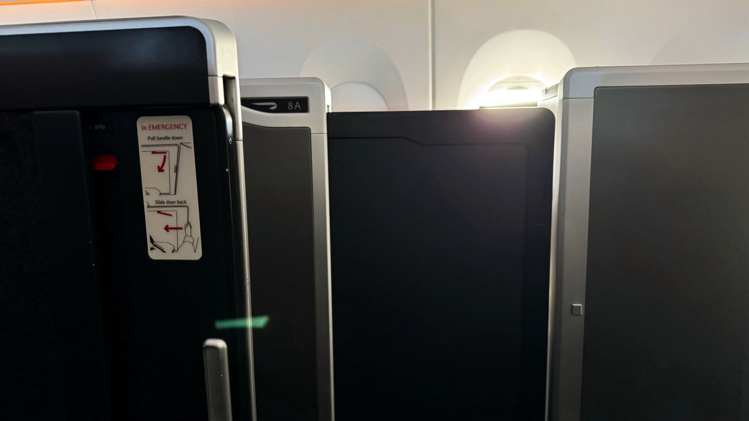 Nos assentos você tem porta, que é um conceito relativamente novo para oferecer mais privacidade. É como se cada passageiro tivesse a sua própria suíte.