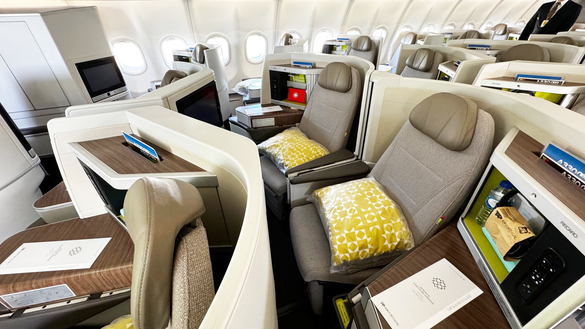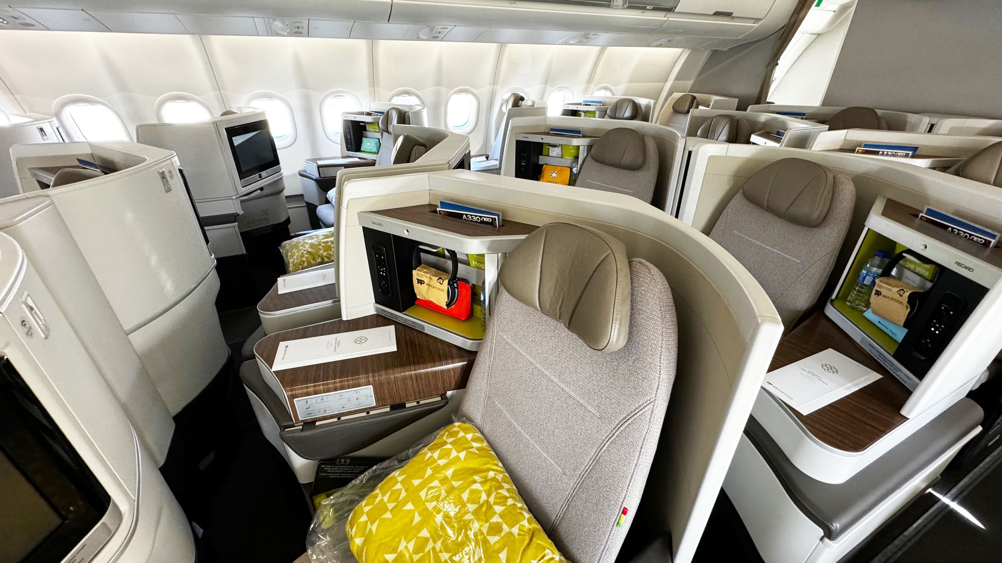 O A330-900neo da TAP transporta 298 passageiros, divididos da seguinte forma: