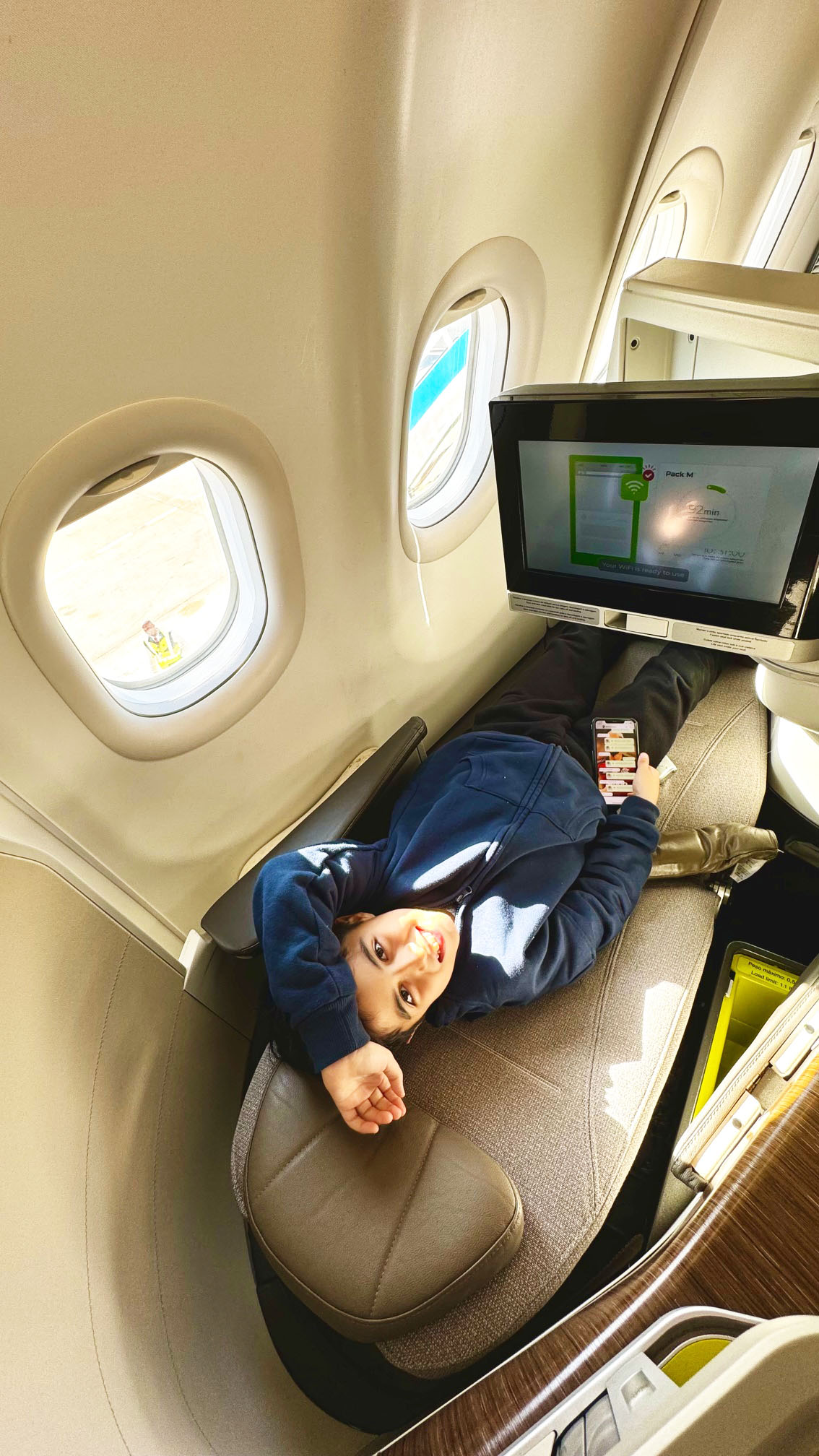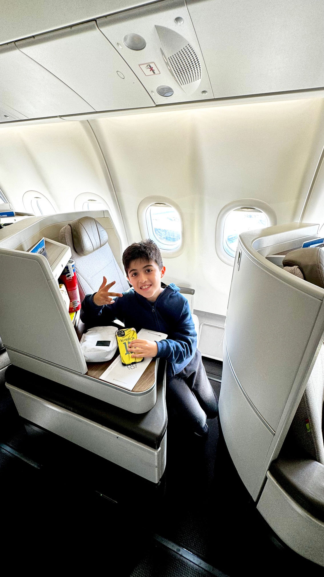 O Lipe aproveitou demais o espaço – ele gosta de viajar sempre na janela.
