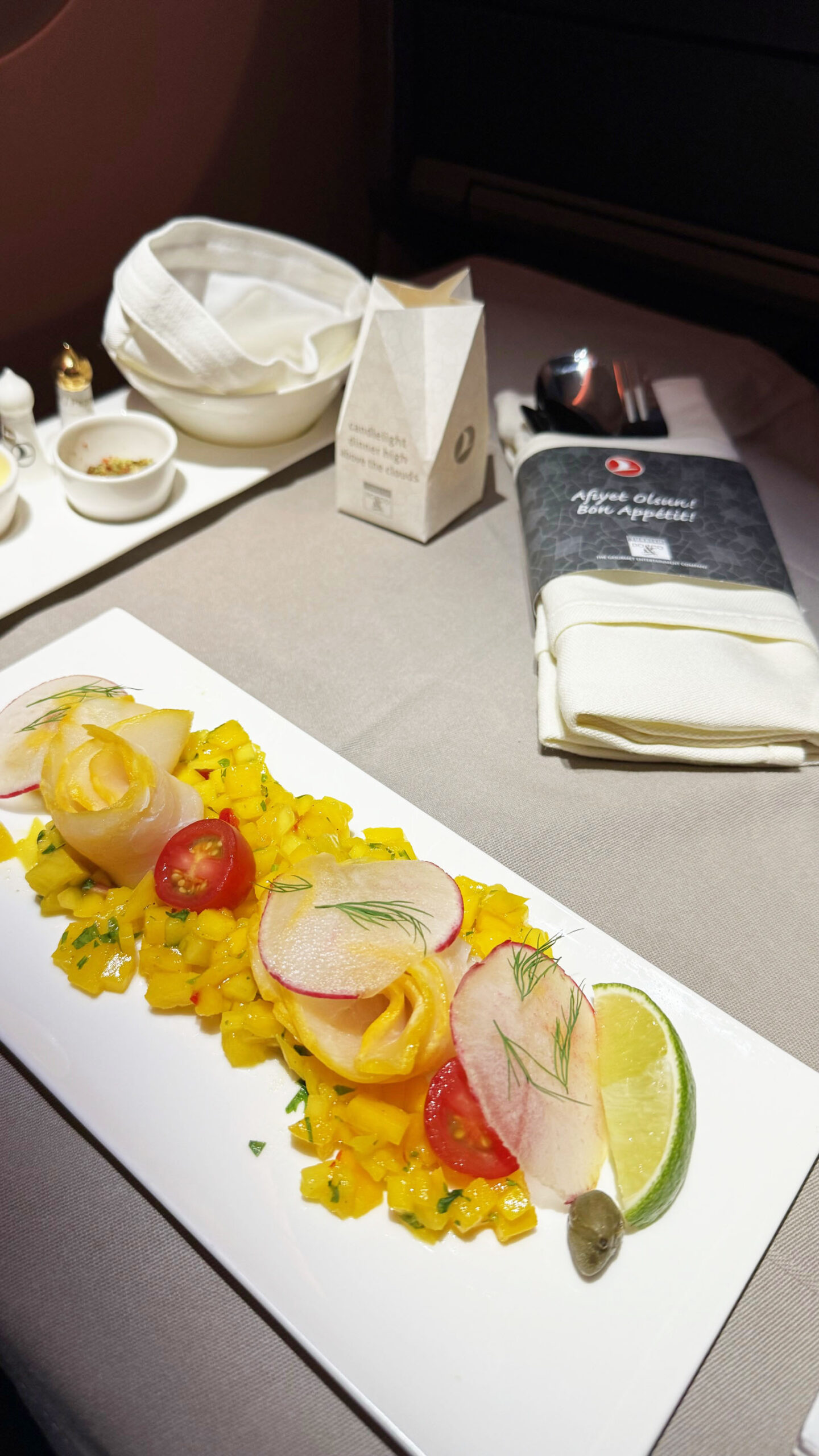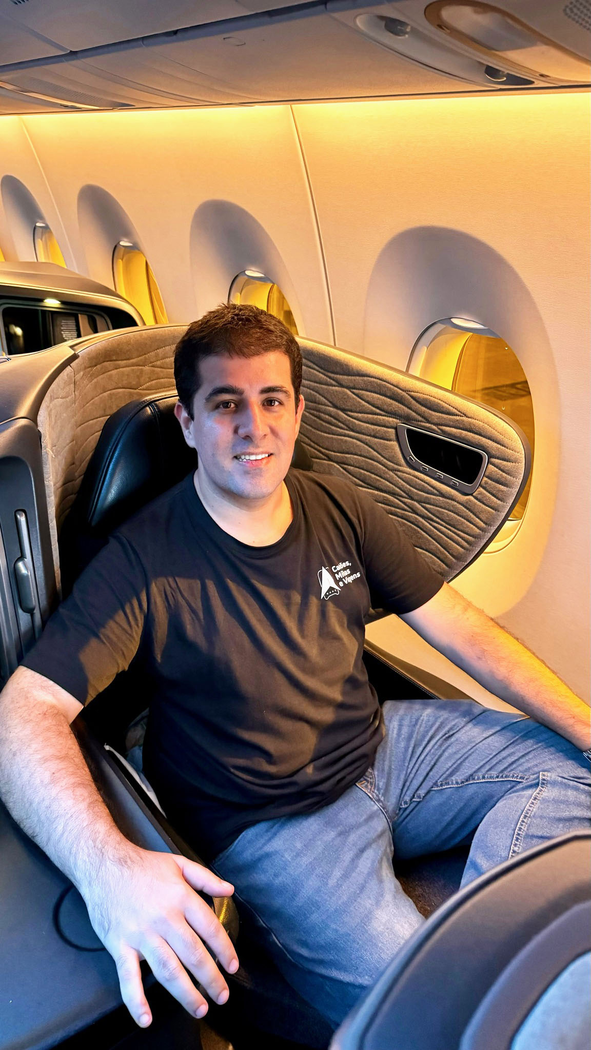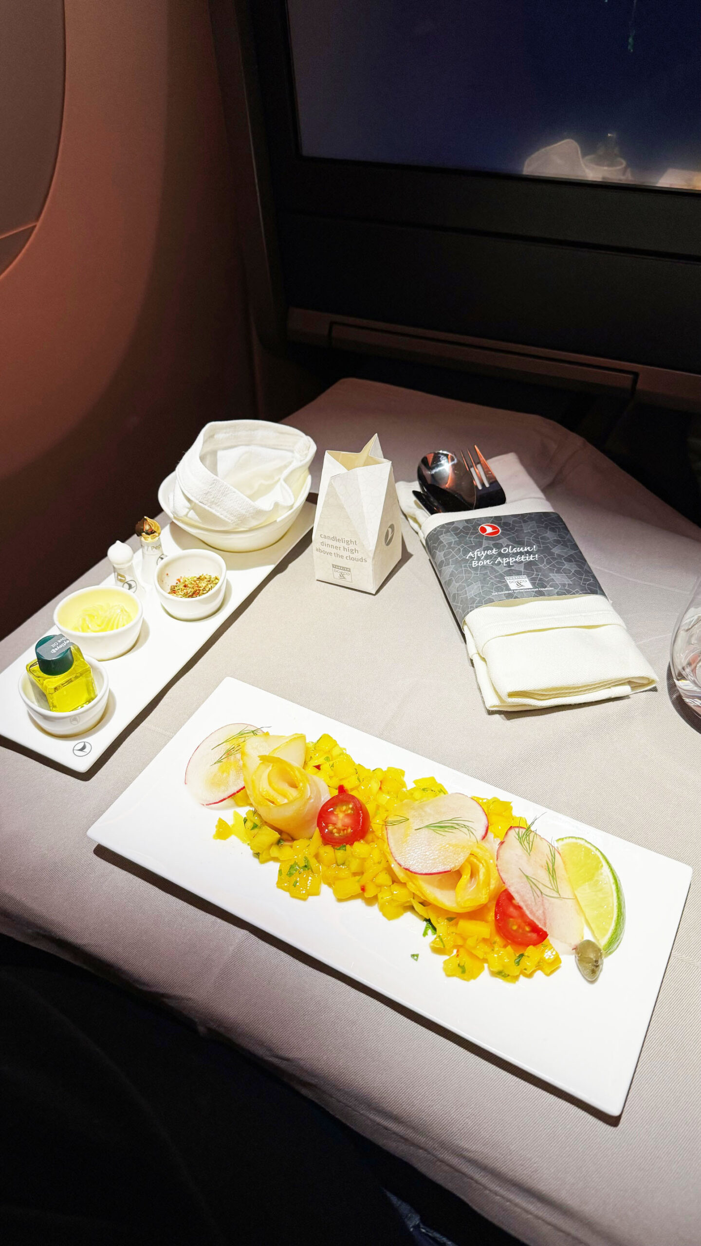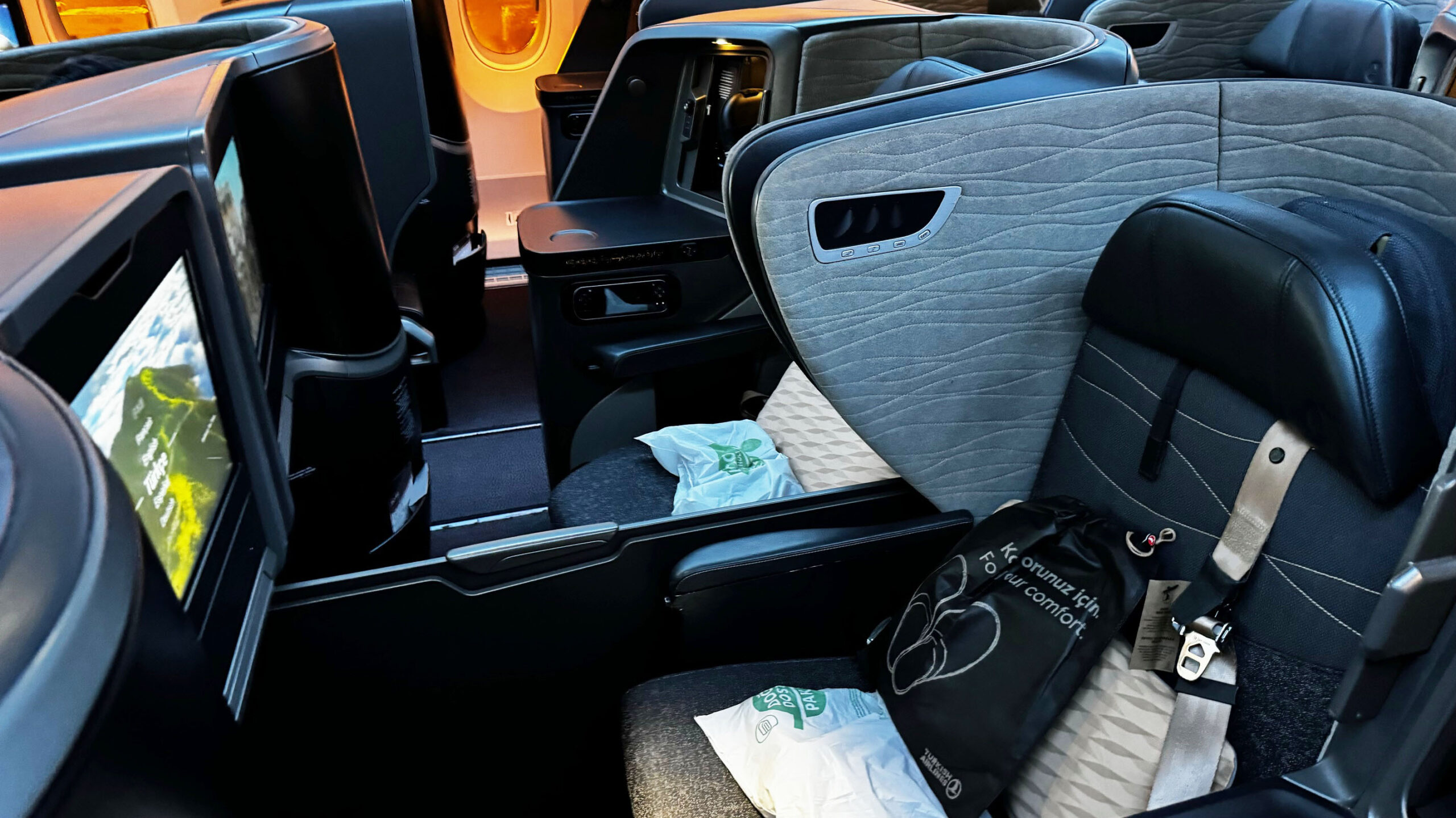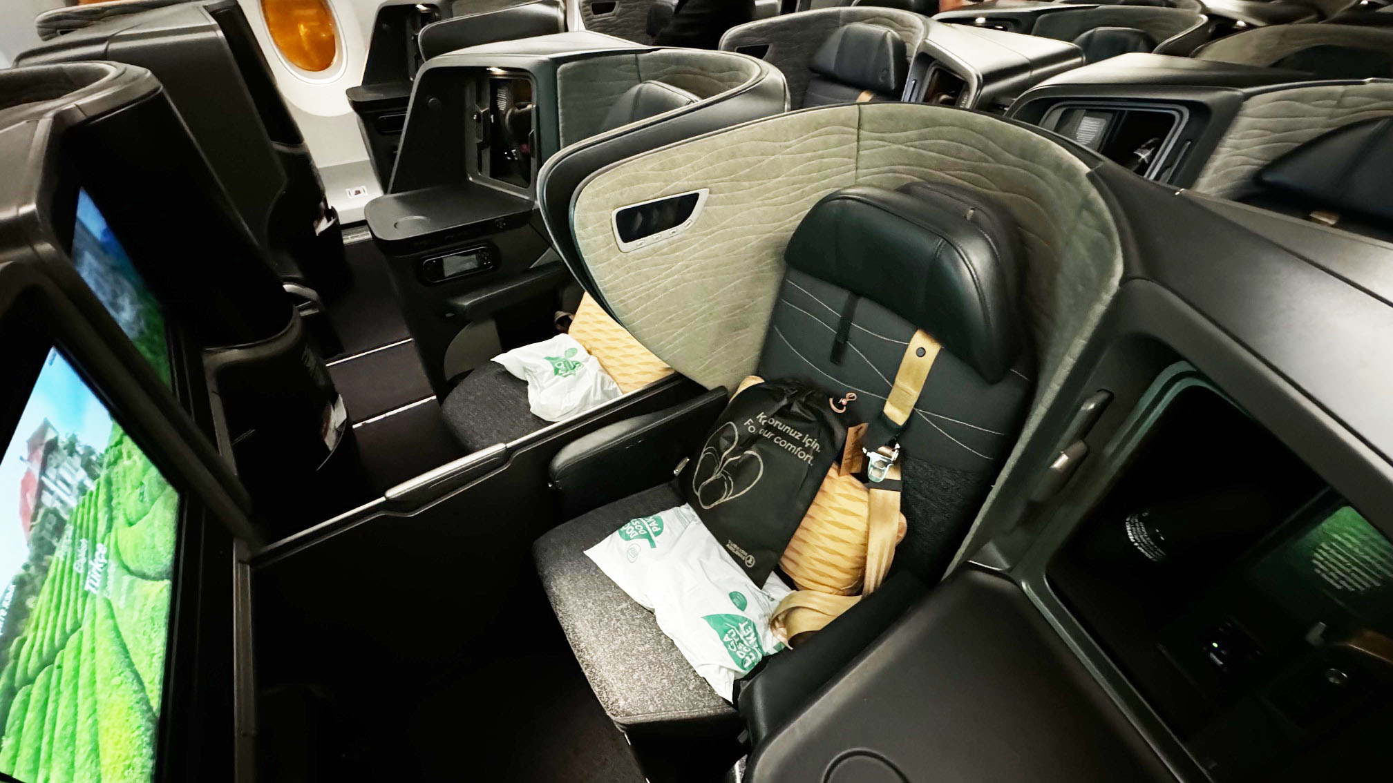 O voo foi ótimo! A Turkish Airlines oferece um produto muito bom na sua Classe Executiva. O assento é bastante confortável e a cabine bem elegante. Para ficar melhor, falta a atualização do assento para uma versão mais moderna, com porta, o que aumenta consideravelmente a privacidade durante o voo.