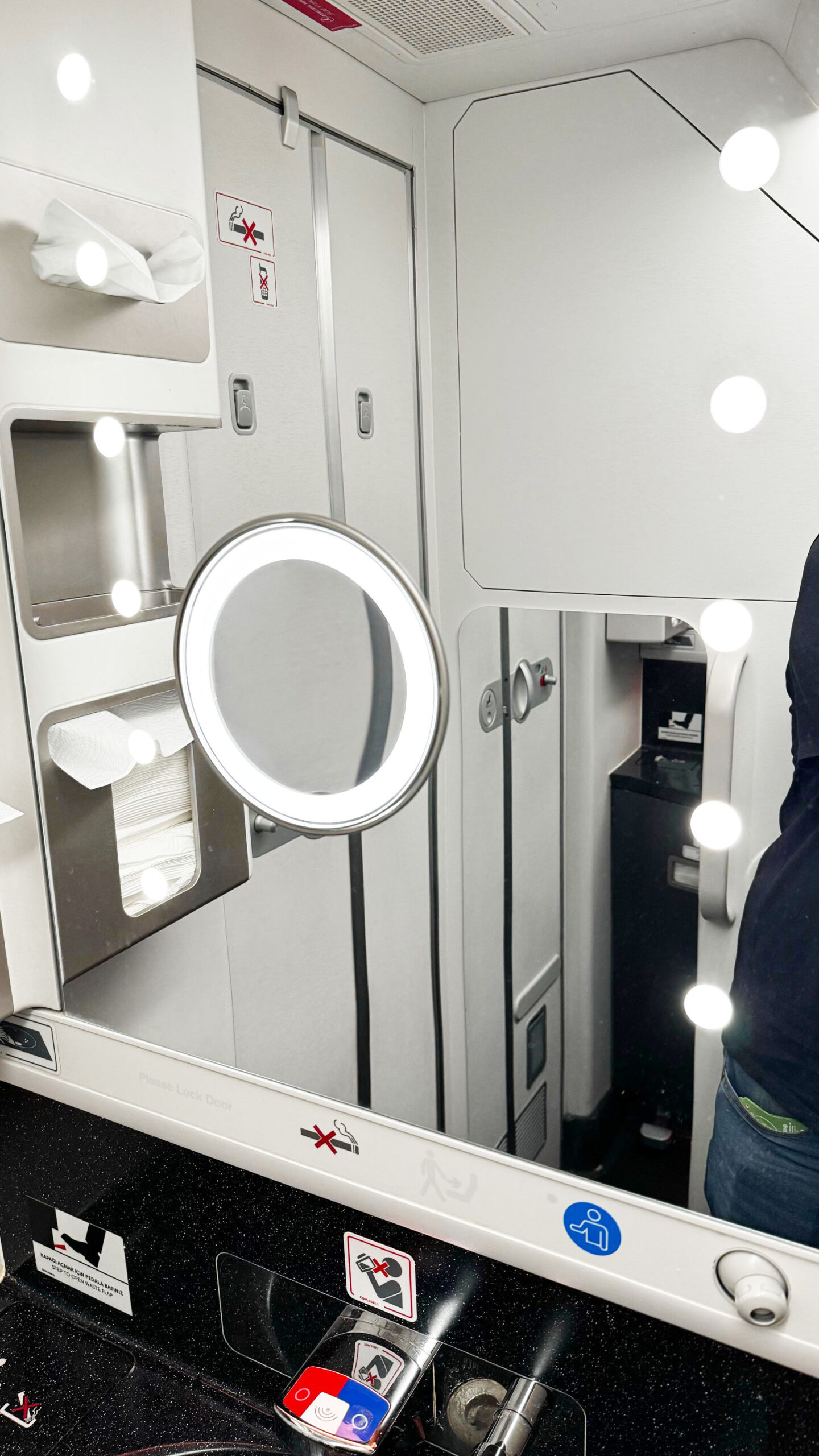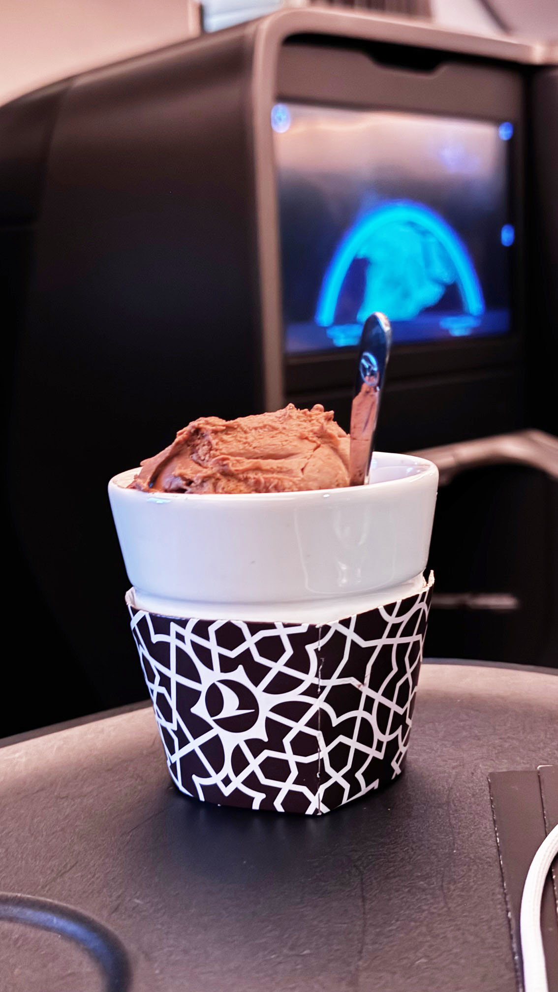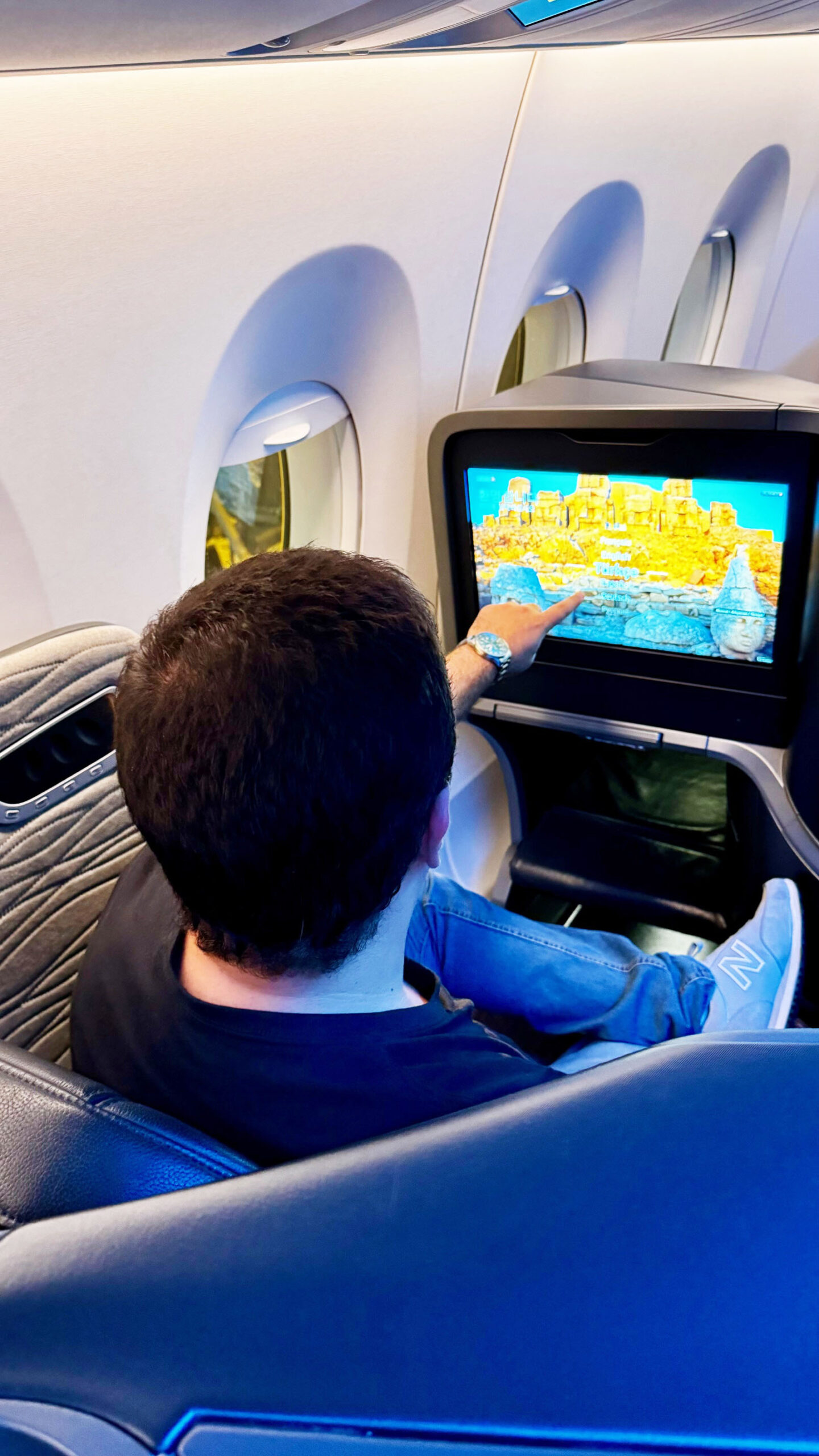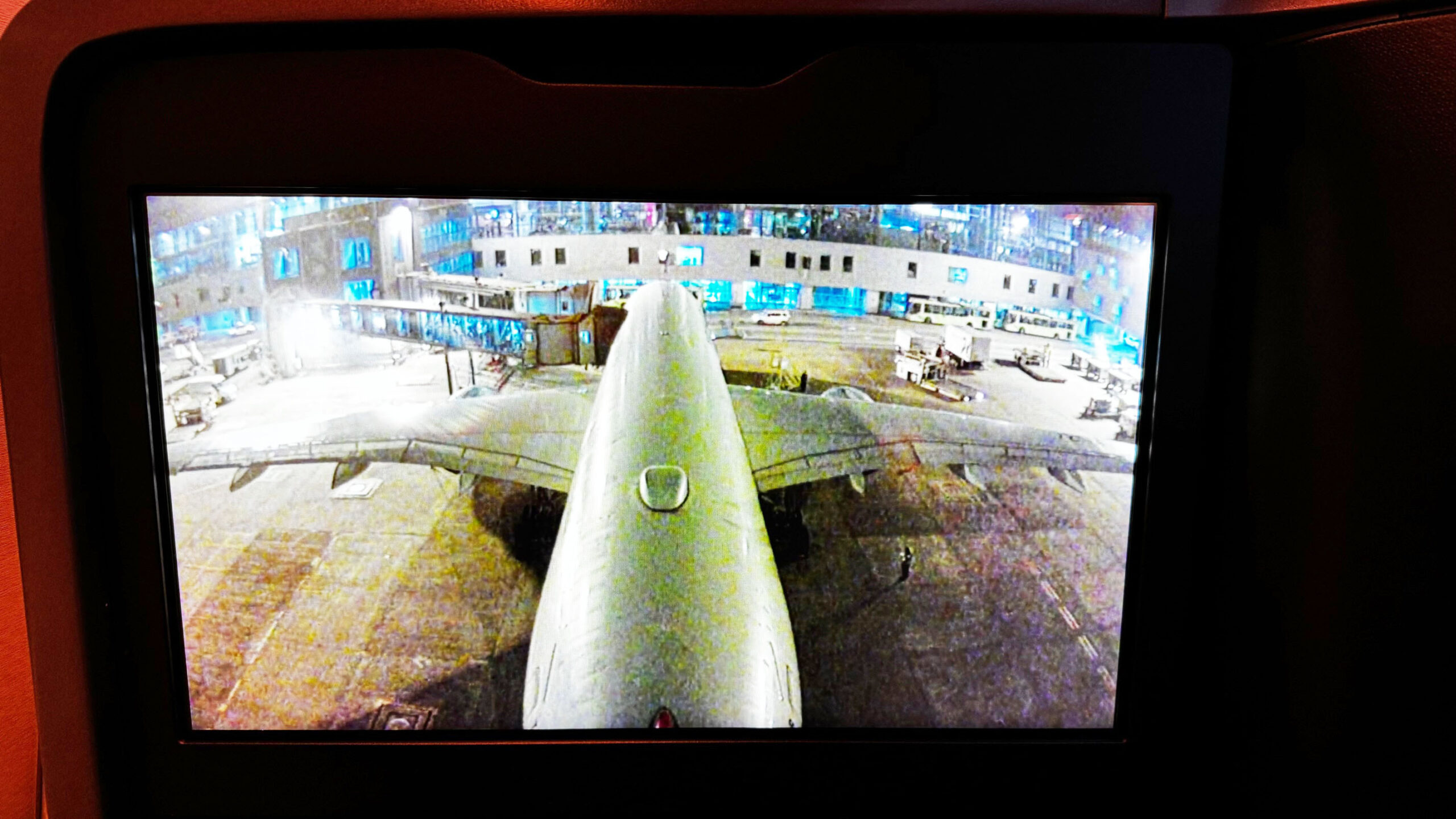Um dos diferenciais do A350 são as duas câmeras, para curtir o visual. Infelizmente, esse voo foi noturno, e não deu para ver muita coisa. Em voos diurnos eu adoro ficar curtindo o visual.