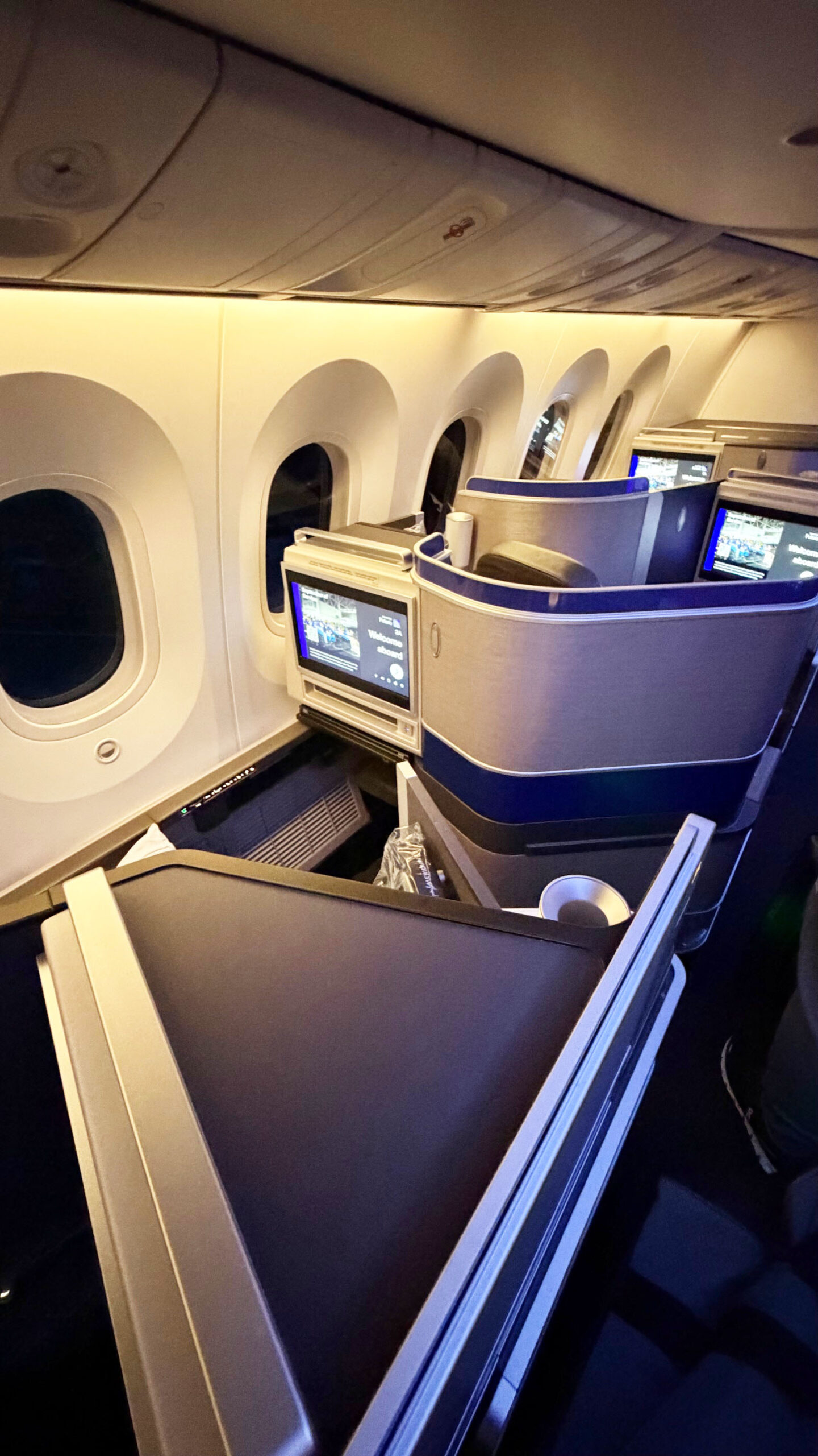 No interior, o 787 da United foi pensado para realmente elevar a experiência em longas distâncias. As janelas são maiores que o padrão da indústria, a pressurização é mais suave e a iluminação em LED acompanha os ciclos de luz para reduzir o cansaço. São detalhes que fazem diferença em voos longos.