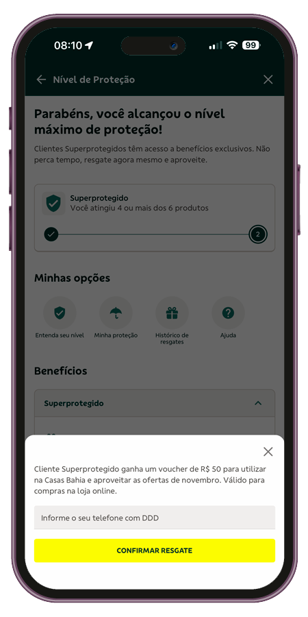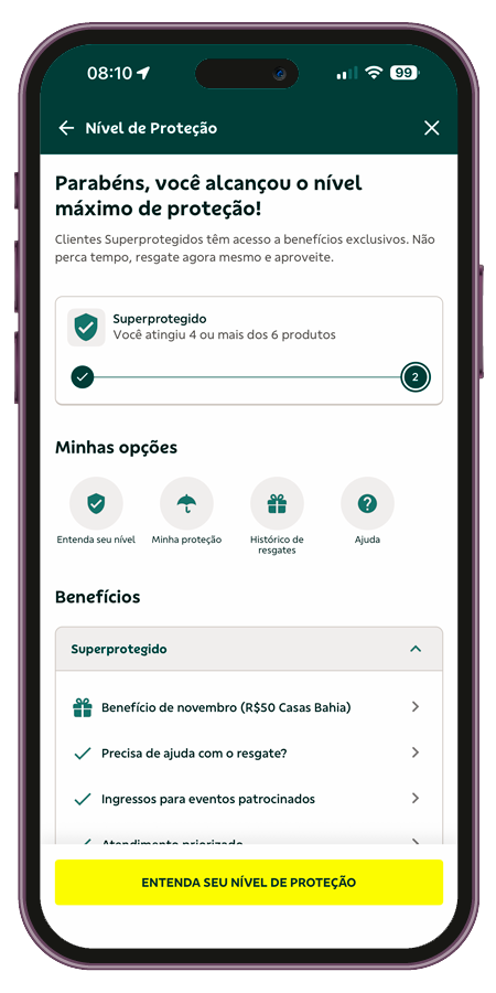 Para ser um cliente Superprotegido, é necessário ter quatro ou mais produtos entre os seguintes: