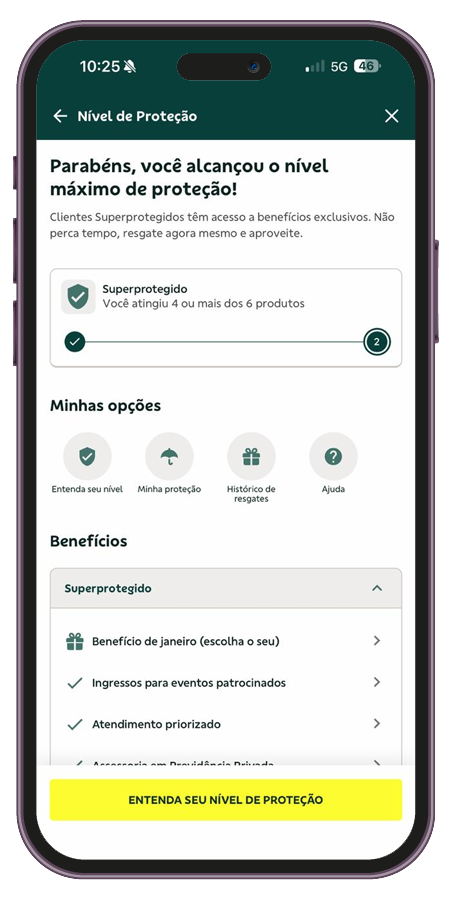 Para ser um cliente Superprotegido, é necessário ter quatro ou mais produtos entre os seguintes: