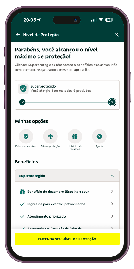 Para ser um cliente Superprotegido, é necessário ter quatro ou mais produtos entre os seguintes: