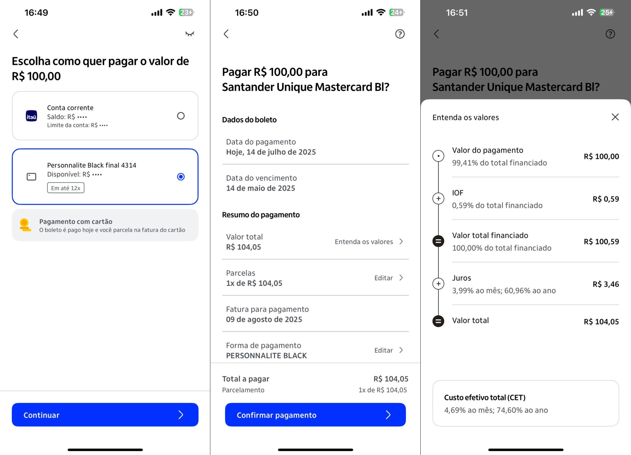 Um boleto de R$ 100,00 pago via Pague Contas Avulso pode custar R$ 104,05 no total, considerando juros e IOF. E, como mencionado, sem acúmulo de pontos. Ou seja, o recurso só vale a pena em casos de emergência financeira.