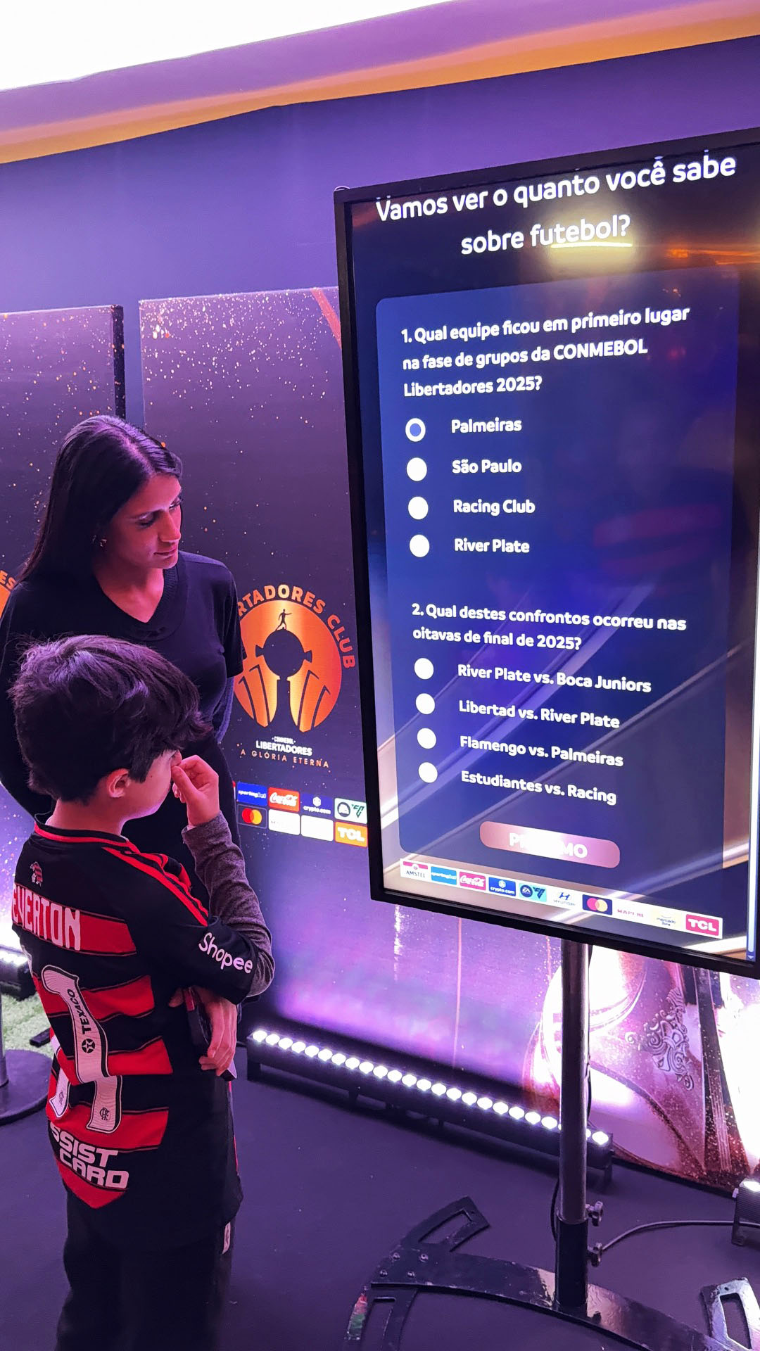 Também há um espaço com realidade virtual e um quiz com 10 perguntas. Ao responder esse quiz você concorre, no final do jogo, a uma blusa, um short e uma bola oficial.