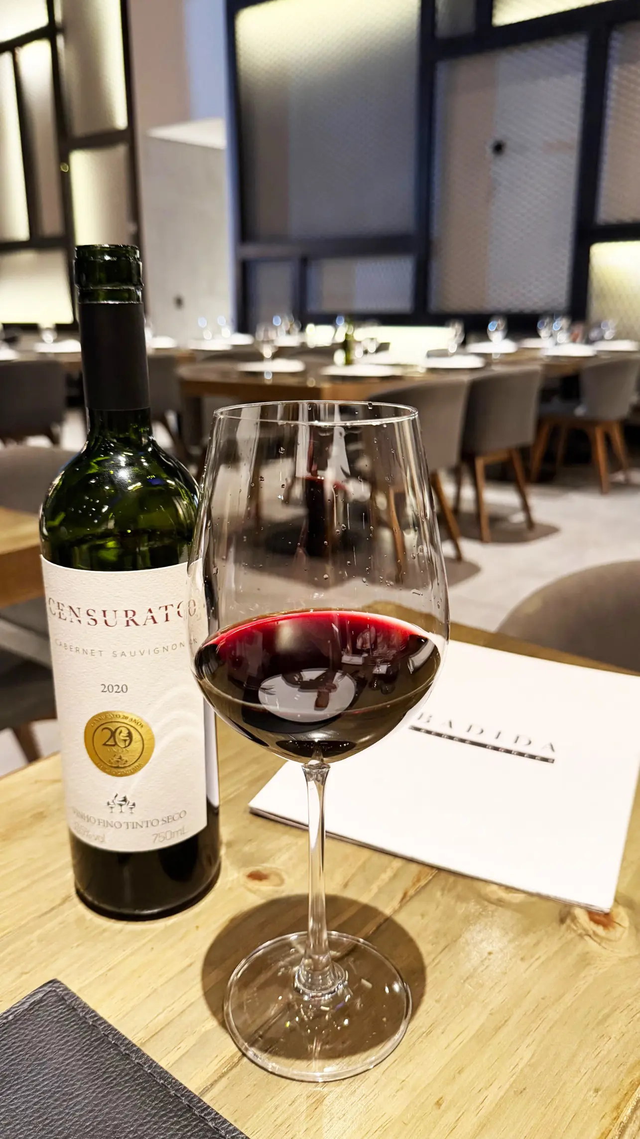 Optei por prestigiar o Paraná e escolhi o Censurato, um vinho tinto de perfil intenso e elegante, elaborado a partir da tradicional uva Cabernet Sauvignon. Apresenta aromas marcantes de frutas escuras maduras, com leves notas de especiarias e madeira, resultado de seu amadurecimento em barricas.