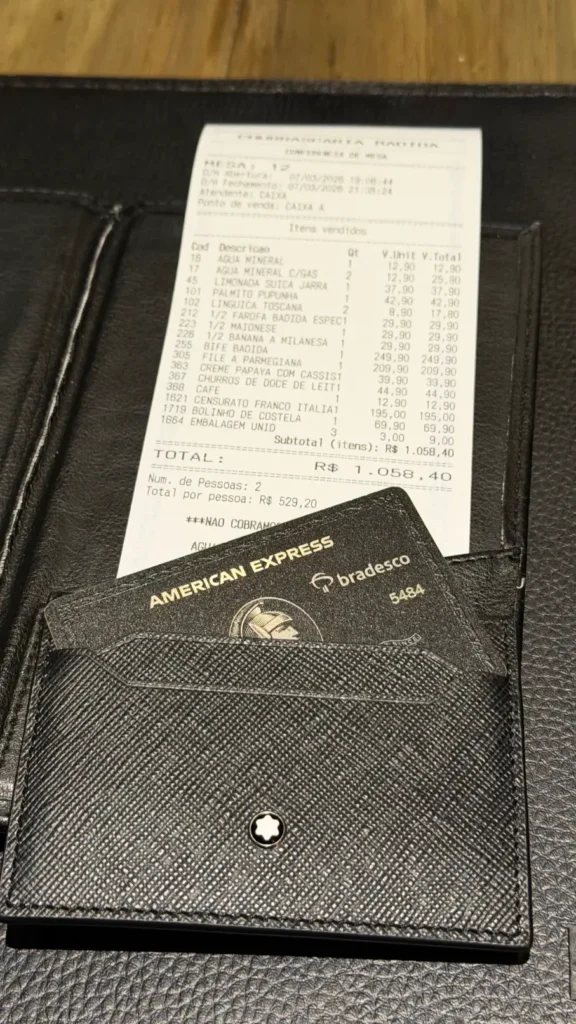 Um dos benefícios do cartão é o Celebrations no mês do seu aniversário. Recebi R$ 1 mil de presente e escolhi o restaurante Badida, em Curitiba, para ir jantar.