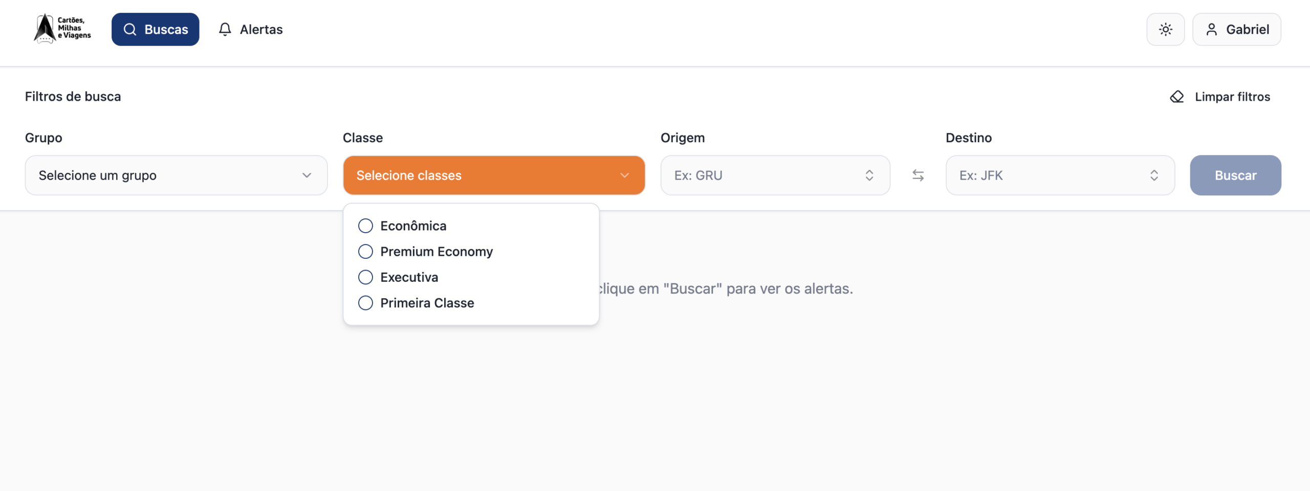 - Classe: Econômica, Premium Economy, Executiva ou Primeira Classe