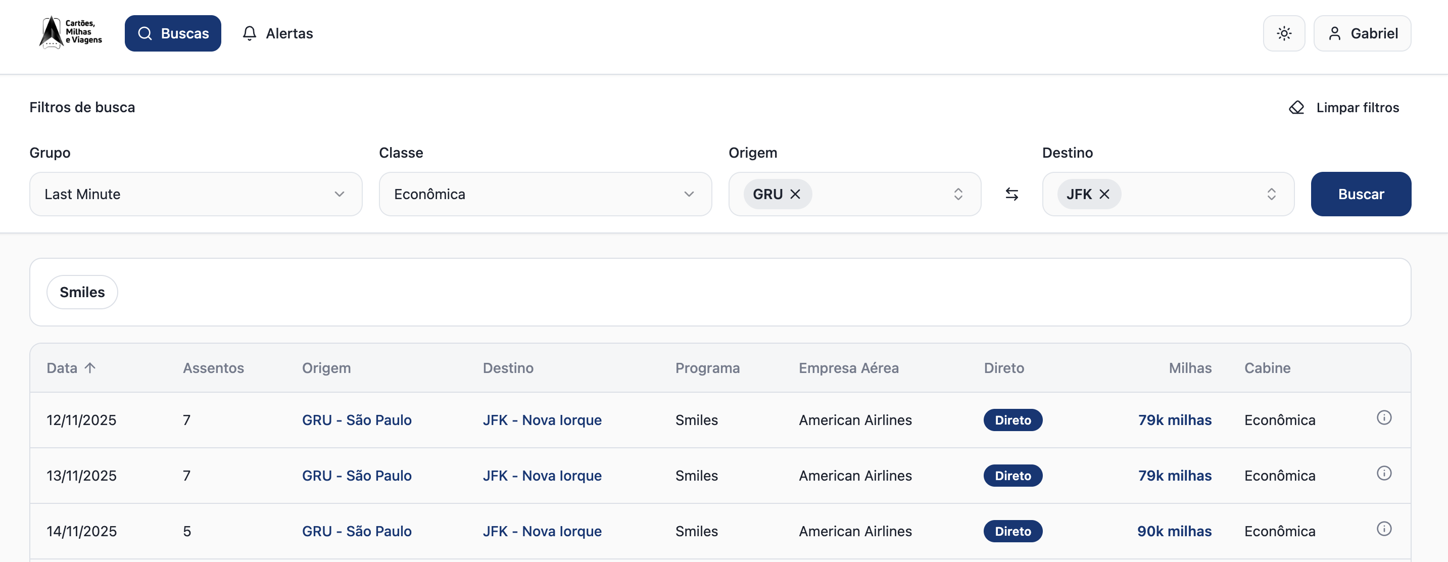 - Programa de milhas (ex: Smiles, Qatar Privilege Club – se o grupo selecionado for o Last Minute)