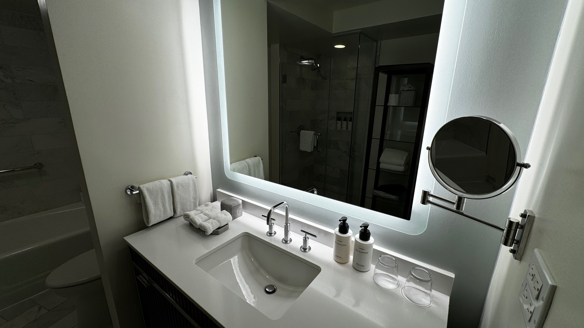 O estacionamento funciona exclusivamente no valet-parking e custa US$47 + taxas por dia. No lobby, há uma loja da locadora Sixt.