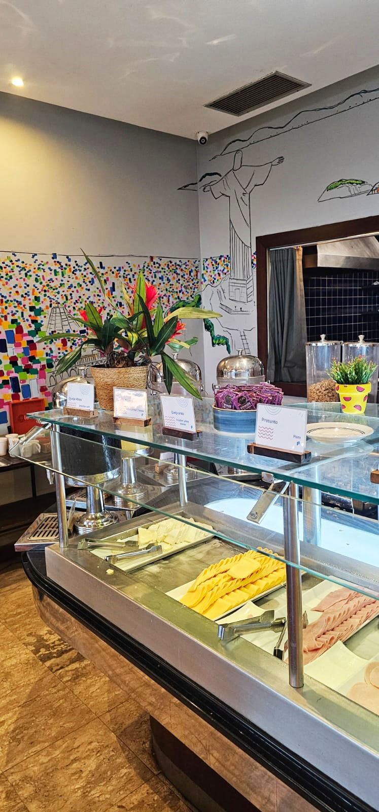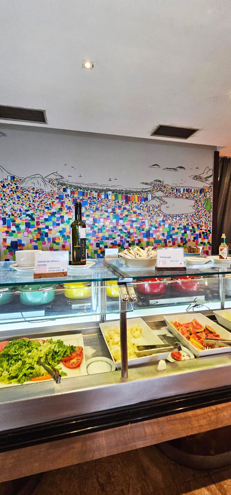A gastronomia do Pestana Rio Atlântica acompanha a proposta prática e acolhedora do hotel. O restaurante principal, Cais da Ribeira, serve café da manhã em estilo buffet com bastante variedade, incluindo frutas frescas, pães, bolos, frios, cereais, sucos naturais e pratos quentes.