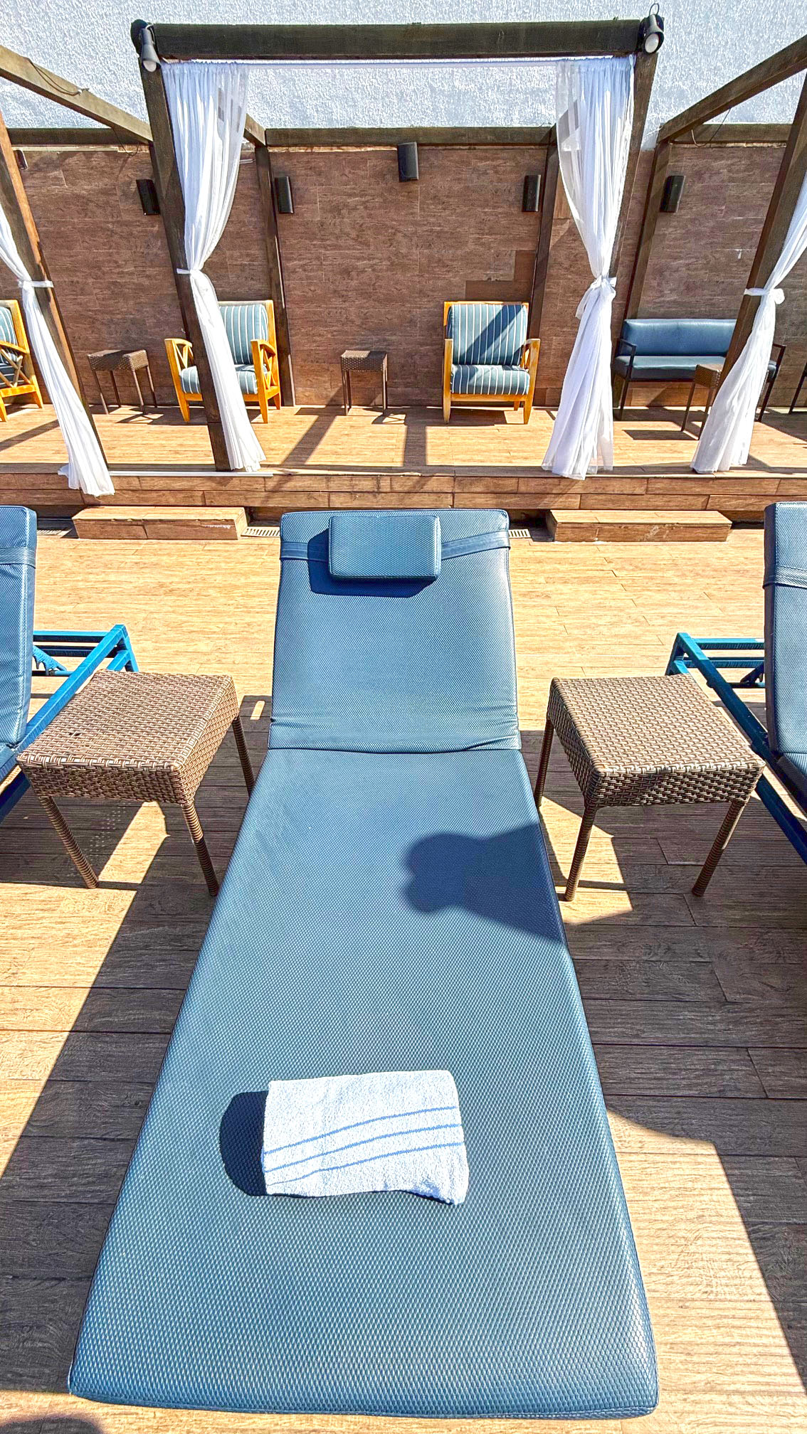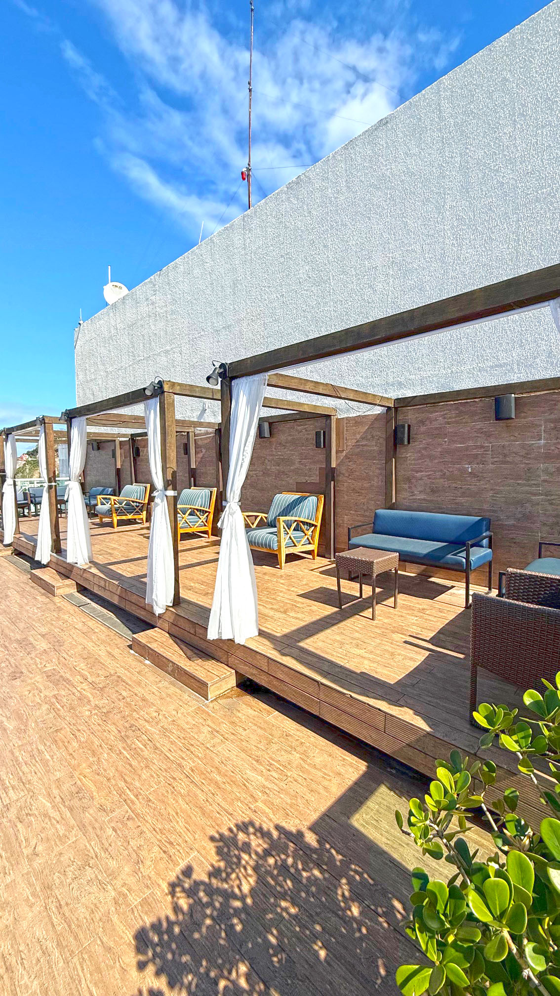 Outro espaço bastante procurado é o bar da cobertura, chamado de Deck Lounge Bar, que combina o clima descontraído da cidade com uma atmosfera sofisticada. Ali, é possível curtir bons drinks, ouvir música e assistir ao pôr do sol em um dos cenários mais bonitos do Brasil. O ambiente é animado e costuma atrair não apenas hóspedes, mas também visitantes que buscam esse clima vibrante de Copacabana.