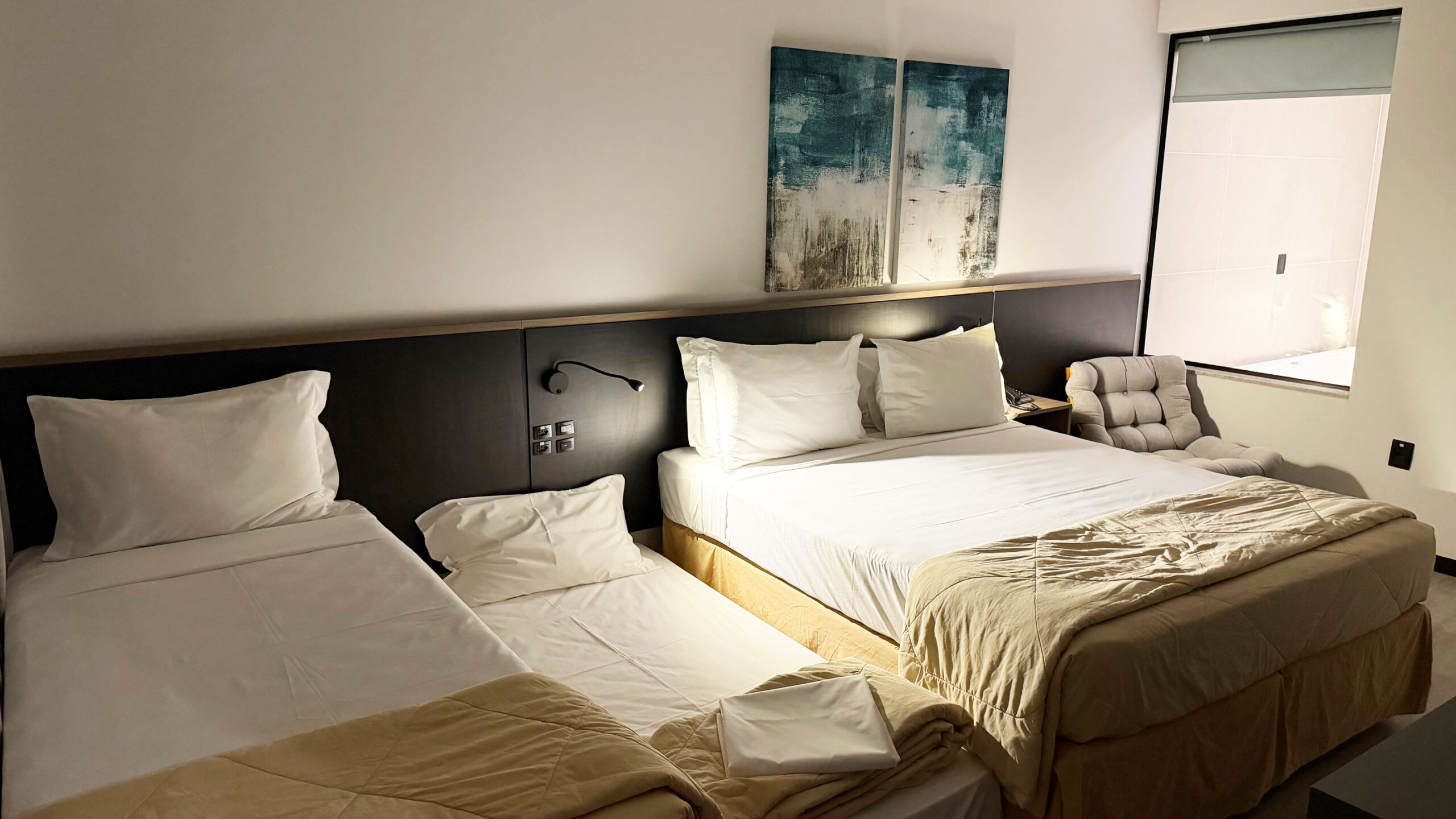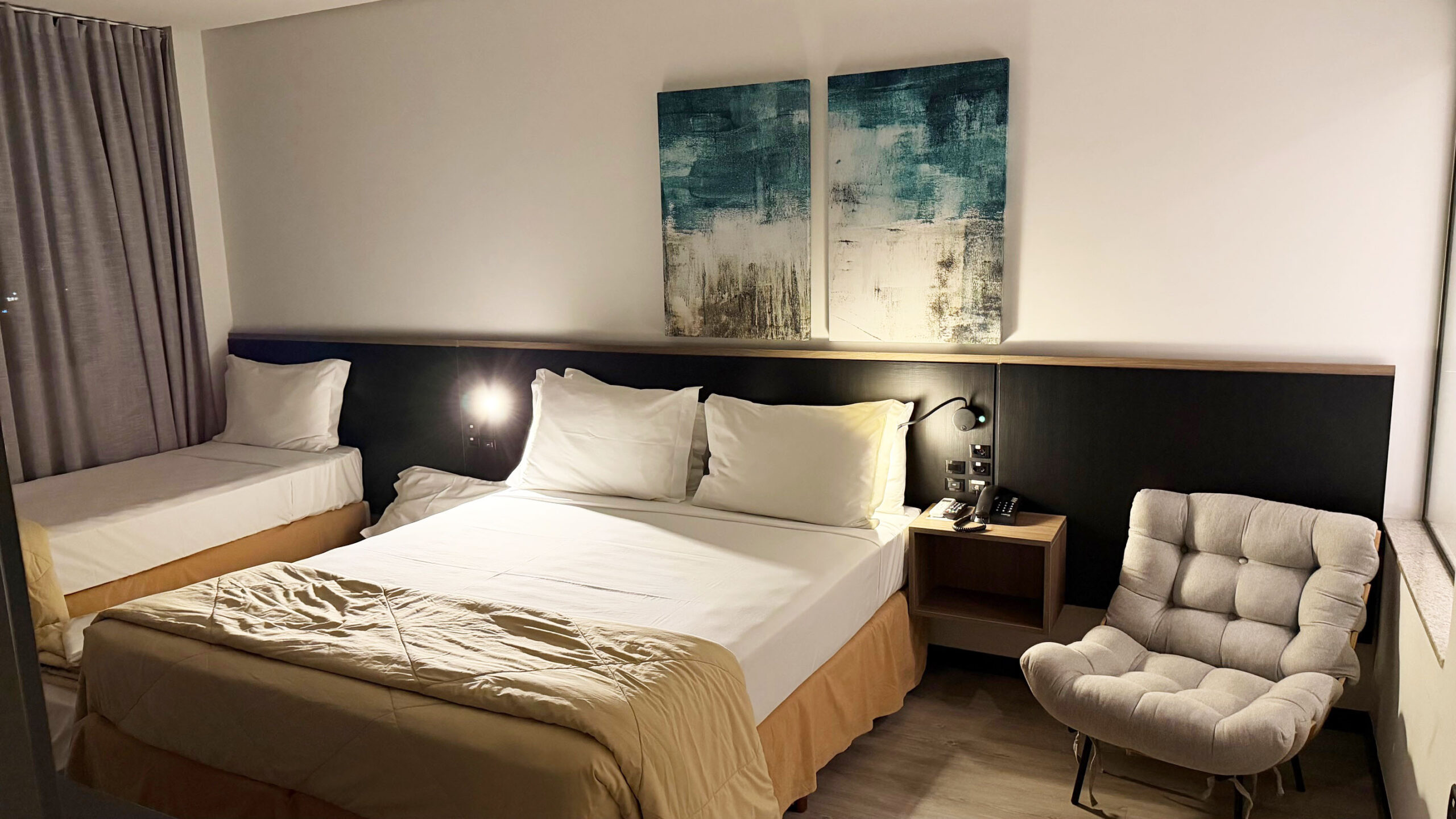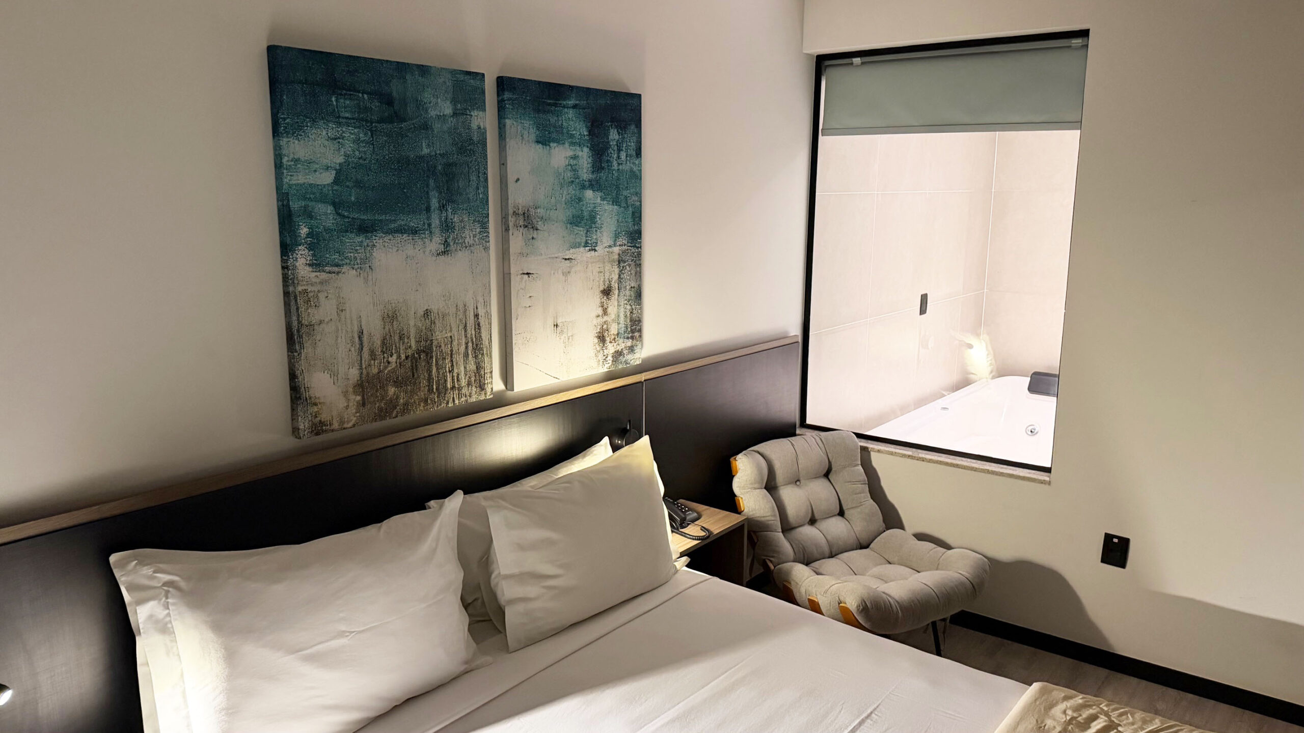 Com diferentes categorias, as suítes atendem a todos os perfis de viajantes, desde quem procura uma hospedagem funcional até quem deseja uma experiência mais exclusiva. Todas as acomodações contam com ar-condicionado, TV de tela plana, frigobar e Wi-Fi, além de banheiros espaçosos (o meu tinha jacuzzi) e enxoval de alto padrão.