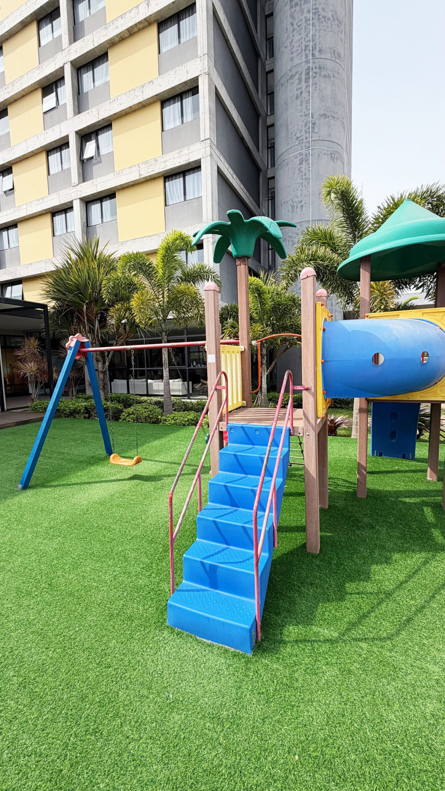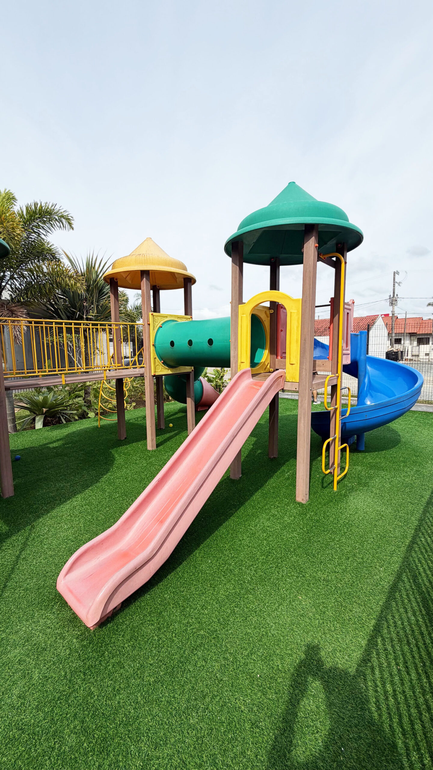 Ao lado da piscina tem um parquinho que as crianças adoram: