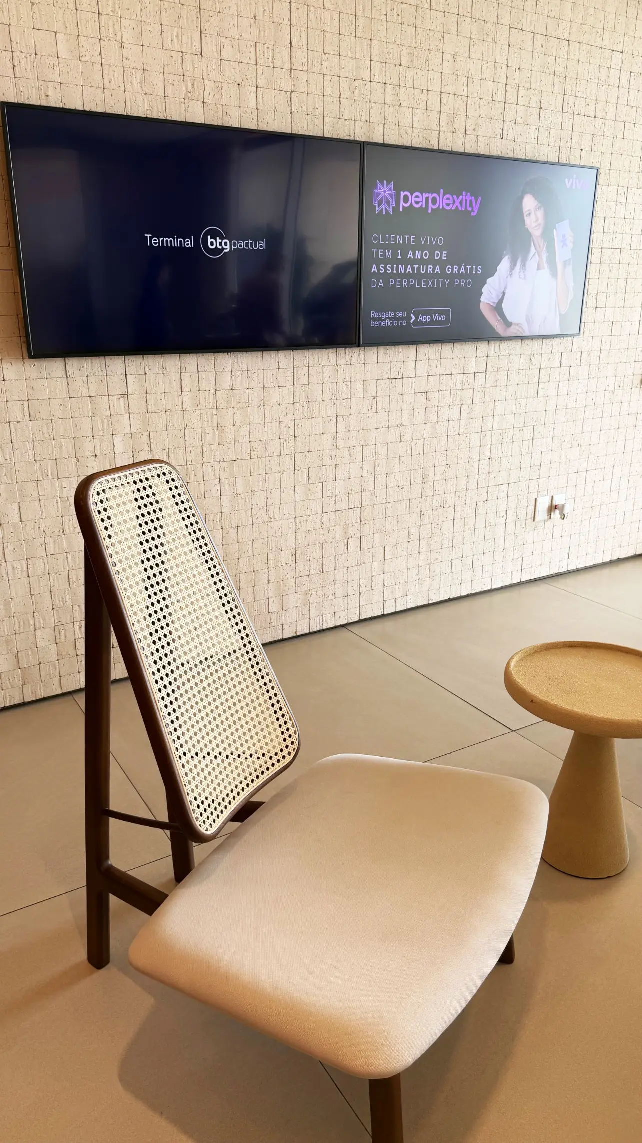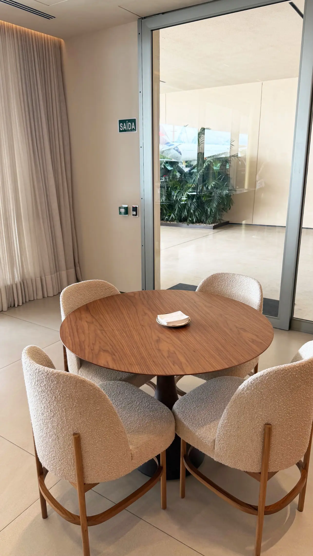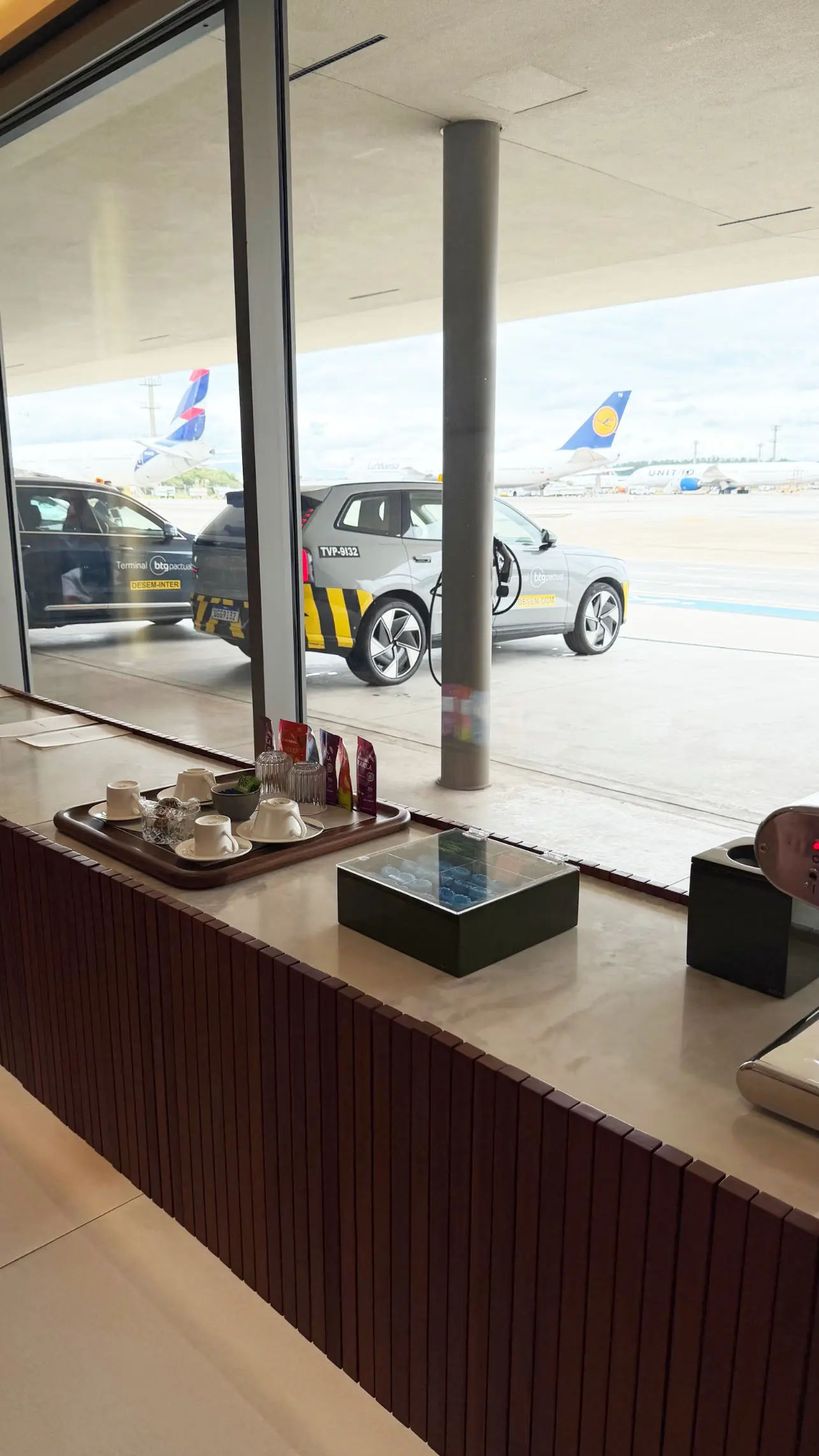Chegando ao terminal, aguardei em uma elegante sala VIP com vista para as aeronaves. Enquanto isso, as malas foram retiradas diretamente no Terminal Nacional por um funcionário do Terminal BTG Pactual e encaminhadas para o Terminal VIP, garantindo uma transição muito mais confortável entre os voos.