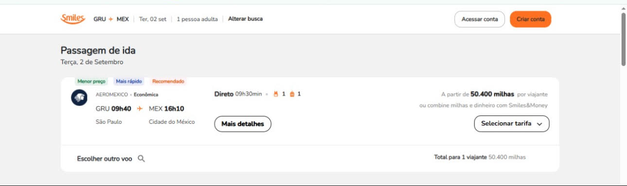 Apenas 50.400 milhas trecho. Emissão via Smiles voando Aeromexico.