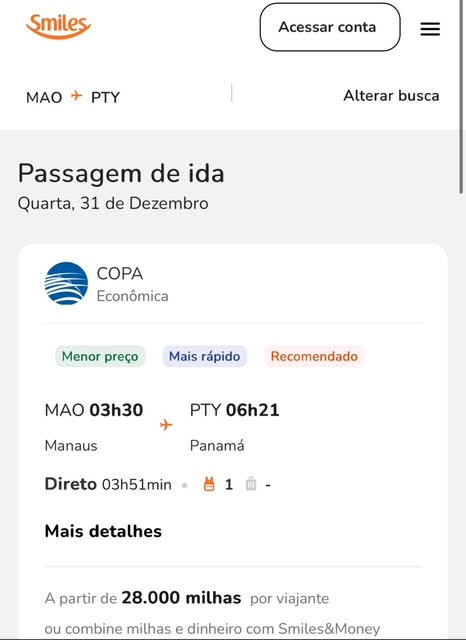 Apenas 28.000 milhas trecho. Emissão via Smiles voando Copa Airlines.