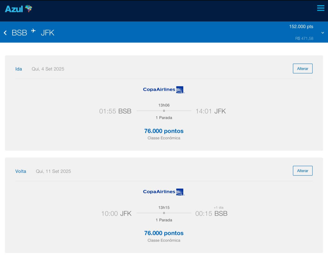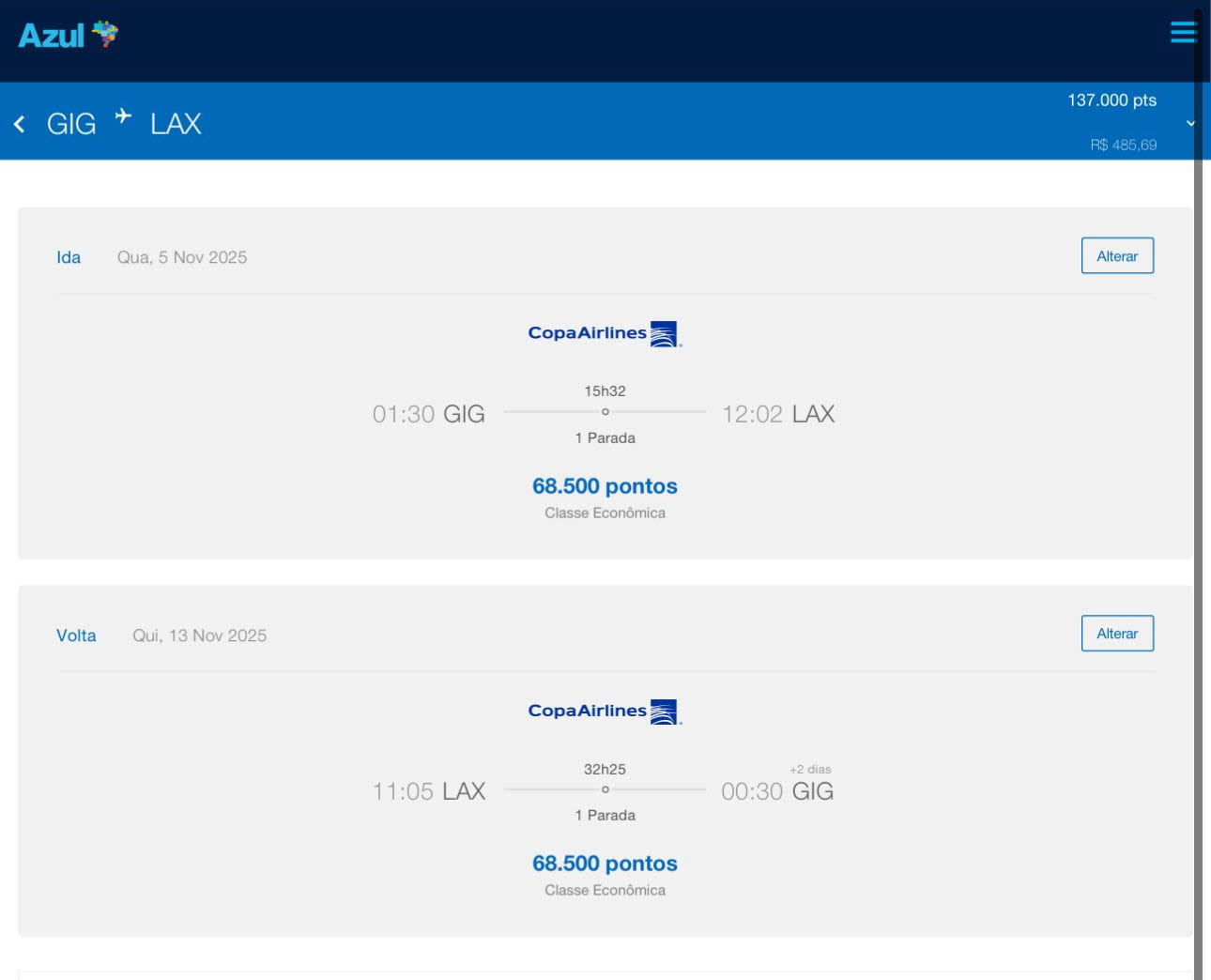 Apenas 76.000 pontos trecho. Emissão via Azul Pelo Mundo voando Copa Airlines.