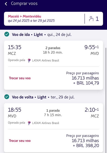 Apenas 16.713 pontos trecho. Emissão via LATAM Pass voando LATAM.