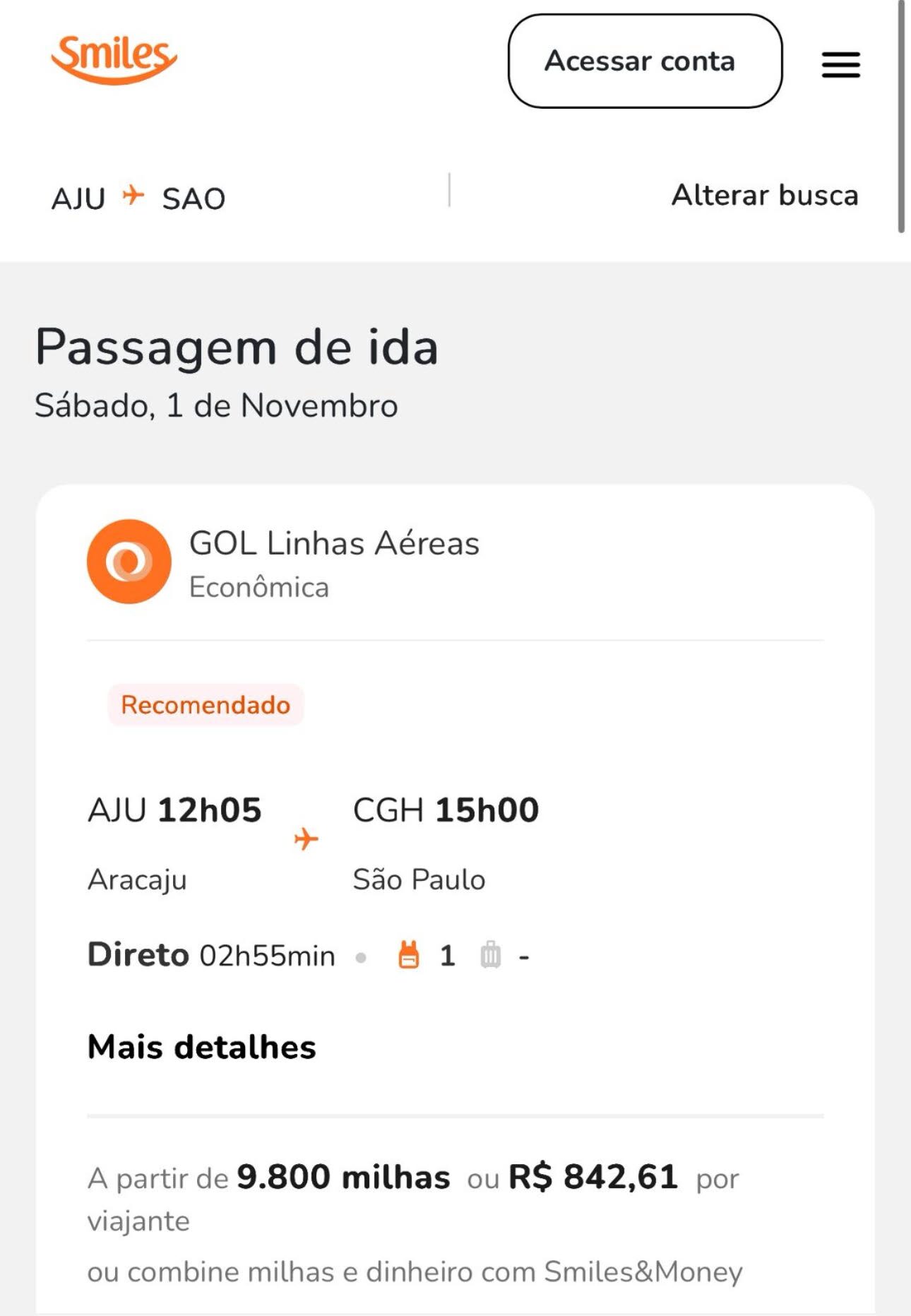 3) Aracaju para São Paulo