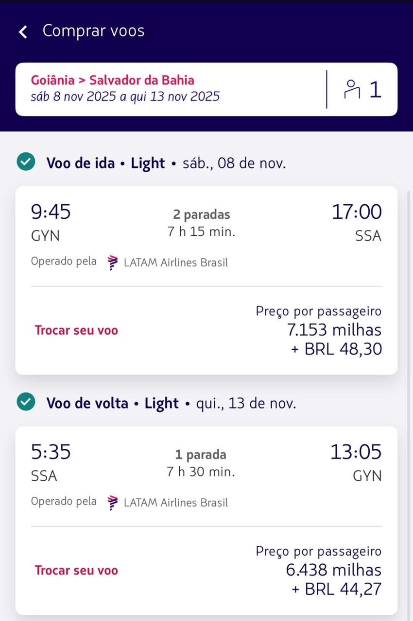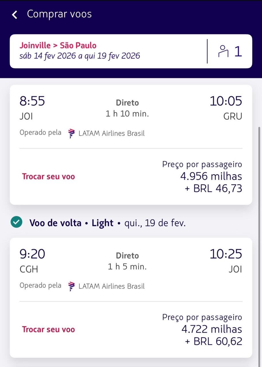 Apenas 7.153 milhas trecho. Emissão via LATAM Pass voando LATAM Airlines.