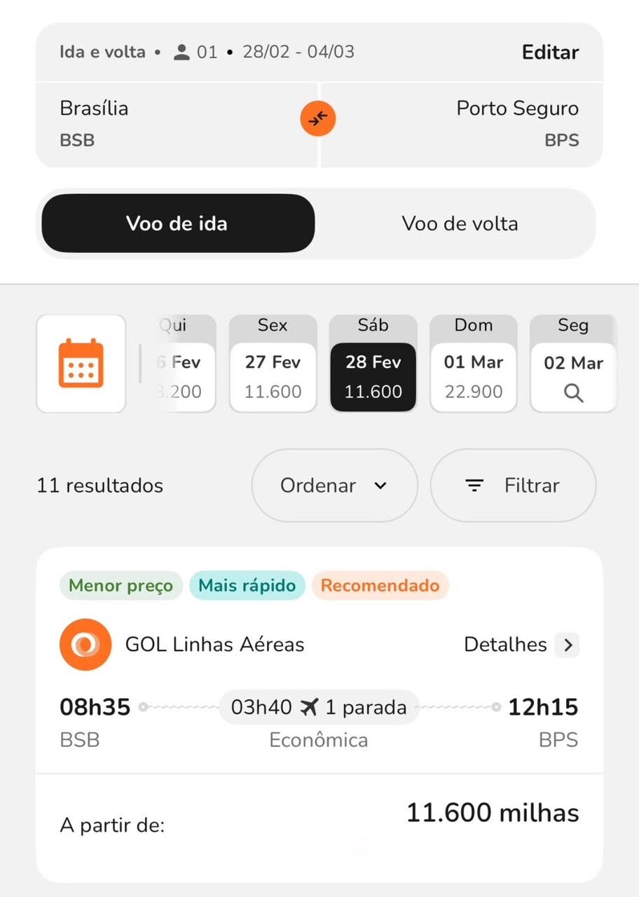 Apenas 9.800 milhas trecho. Emissão via Smiles voando GOL Linhas Aéreas.