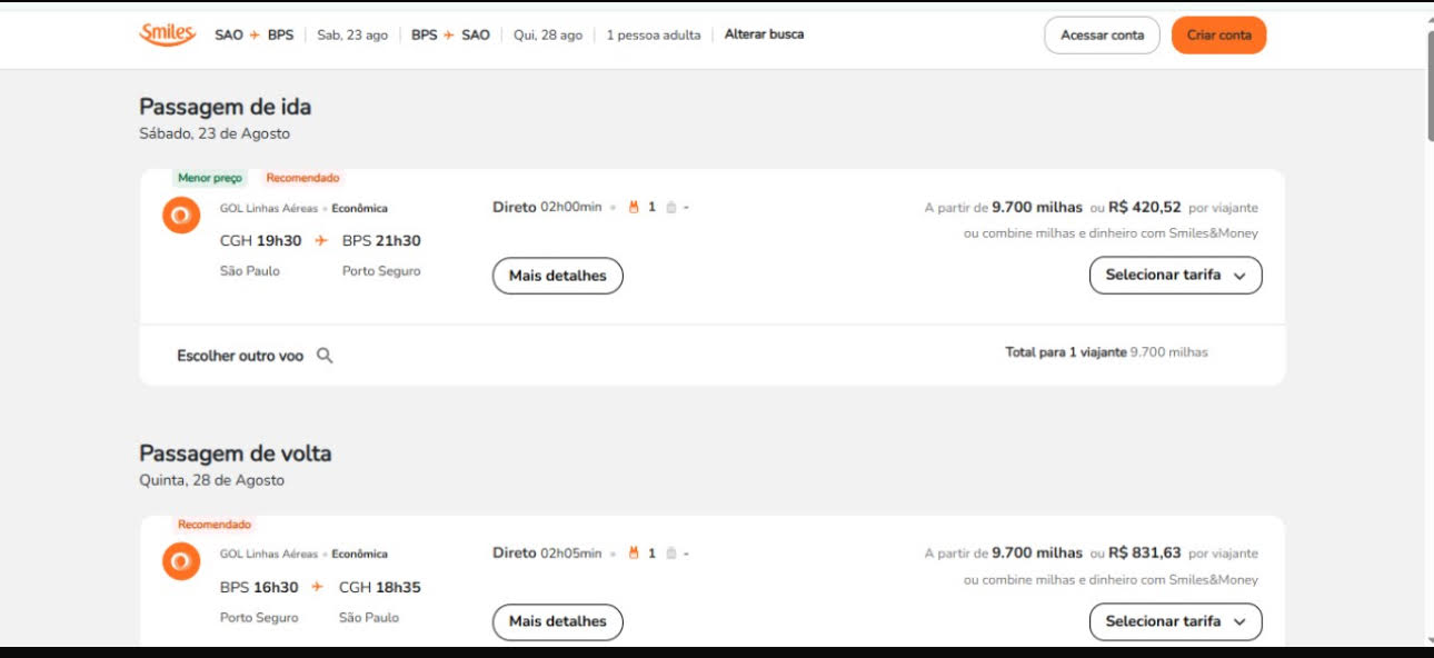 1) São Paulo para Porto Seguro