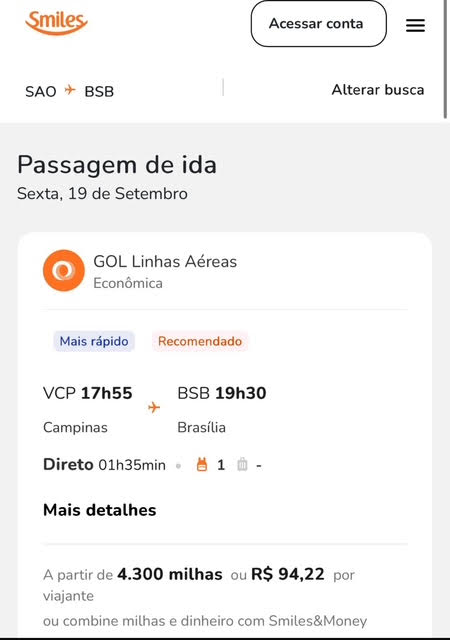 Apenas 4.300 milhas trecho. Emissão via Smiles voando GOL Linhas Aéreas.