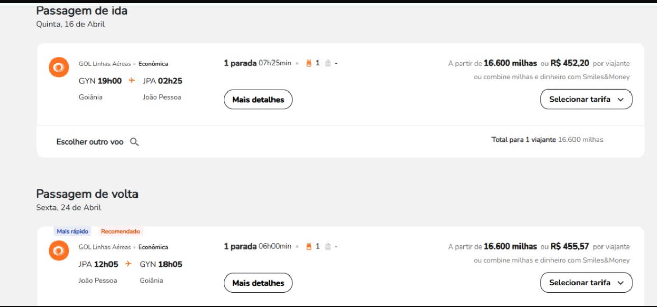 Apenas 16.600 milhas trecho. Emissão via Smiles voando GOL Linhas Aéreas.