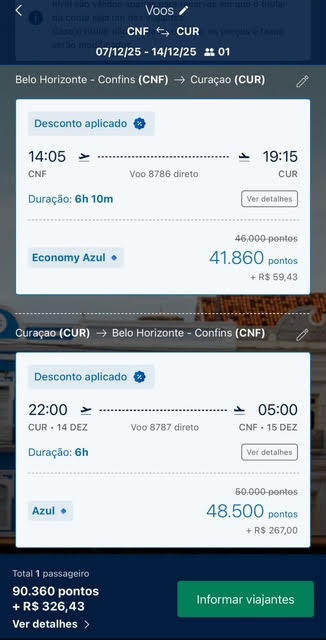 Apenas 41.860 milhas trecho. Emissão via Azul Fidelidade voando Azul.