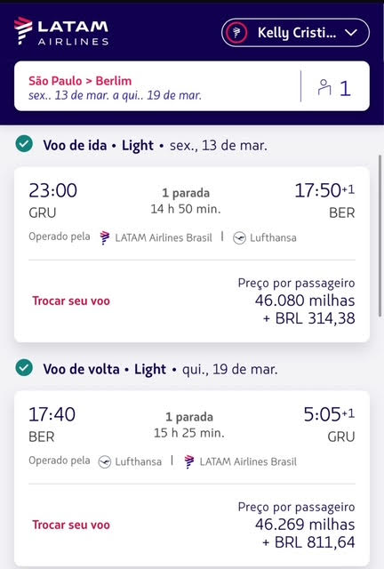 Apenas 46.080 milhas trecho. Emissão via LATAM Pass voando LATAM e Lufthansa.
