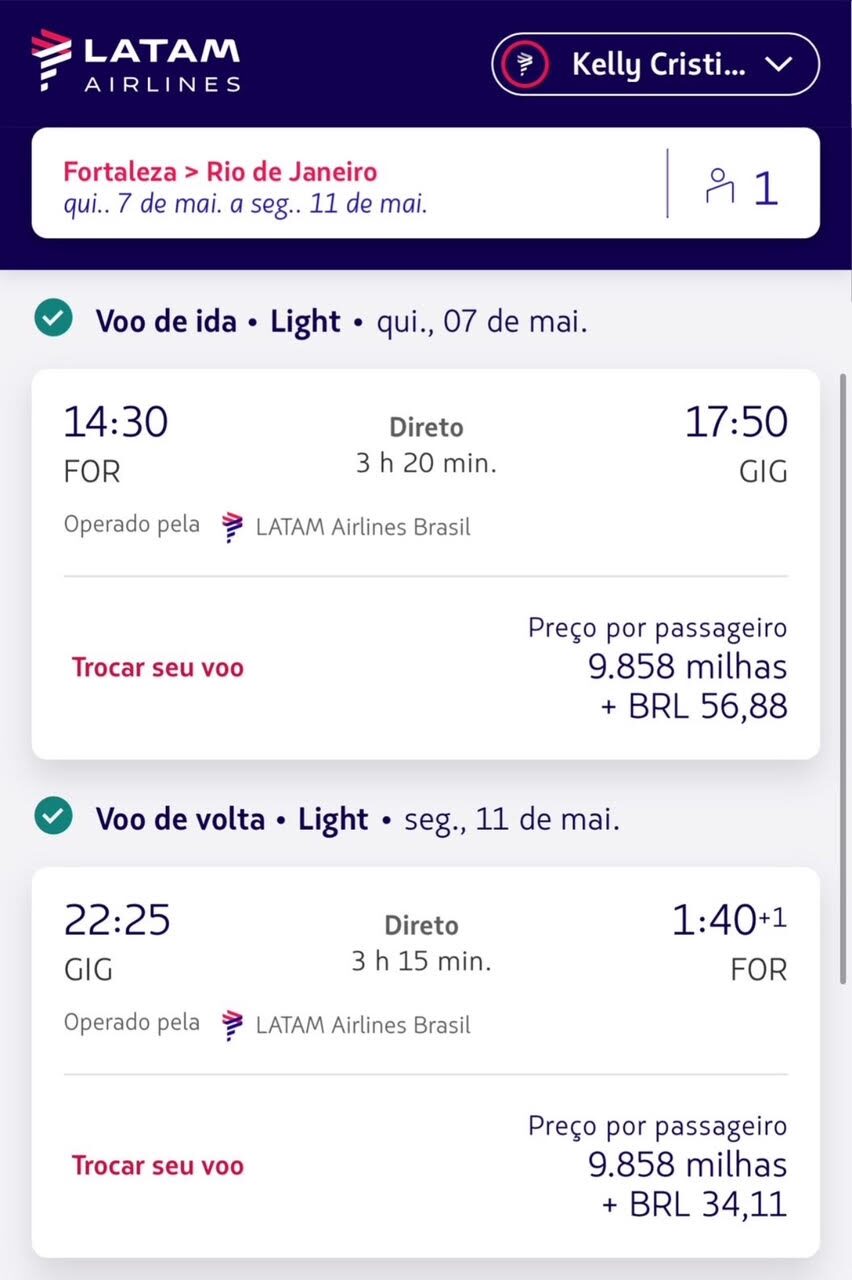 7) Fortaleza para Rio de Janeiro