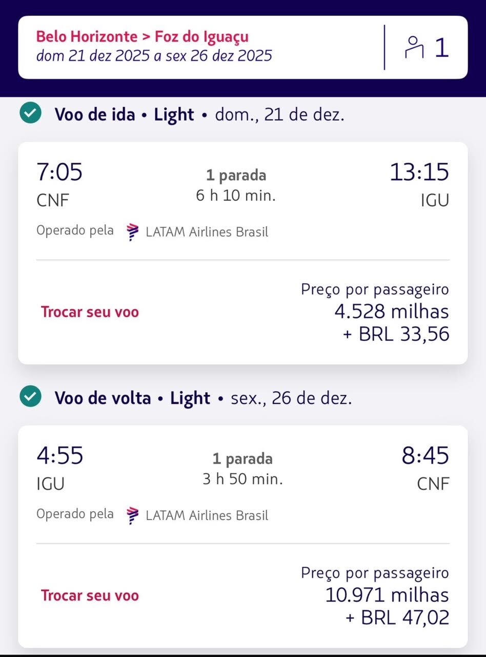 10) Belo Horizonte para Foz do Iguaçu
