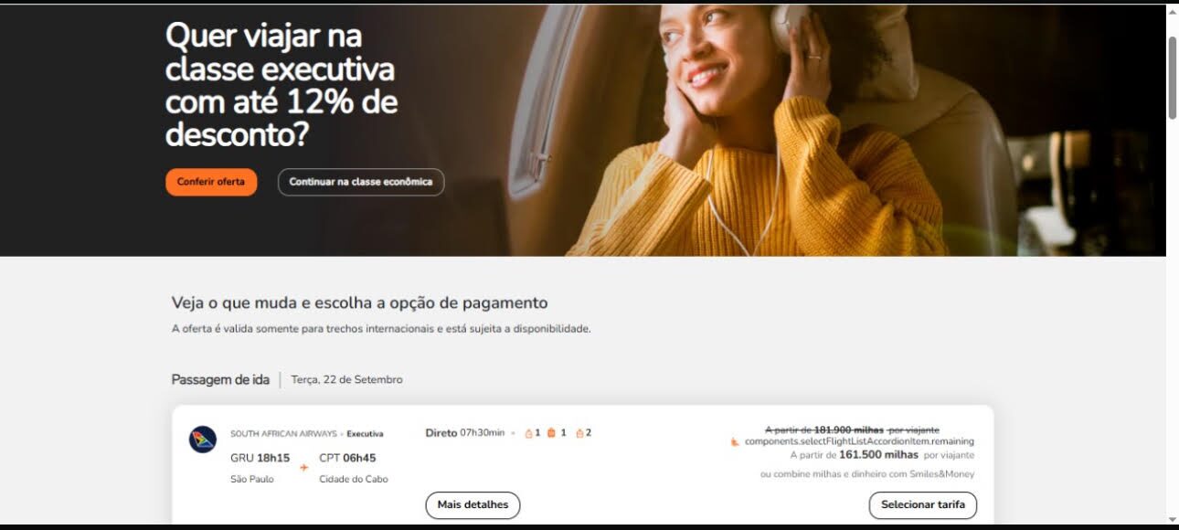 Apenas 161.500 milhas trecho. Emissão via Smiles voando South African.