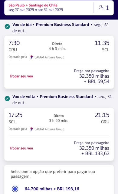 Apenas 32.250 milhas trecho. Emissão via LATAM Pass voando LATAM.