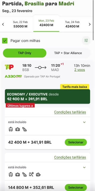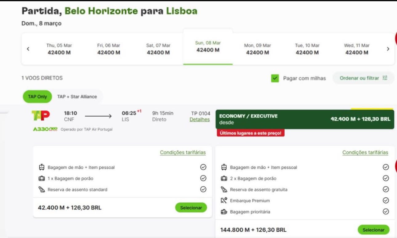 Apenas 144.800 milhas trecho. Emissão via Miles&Go voando TAP.